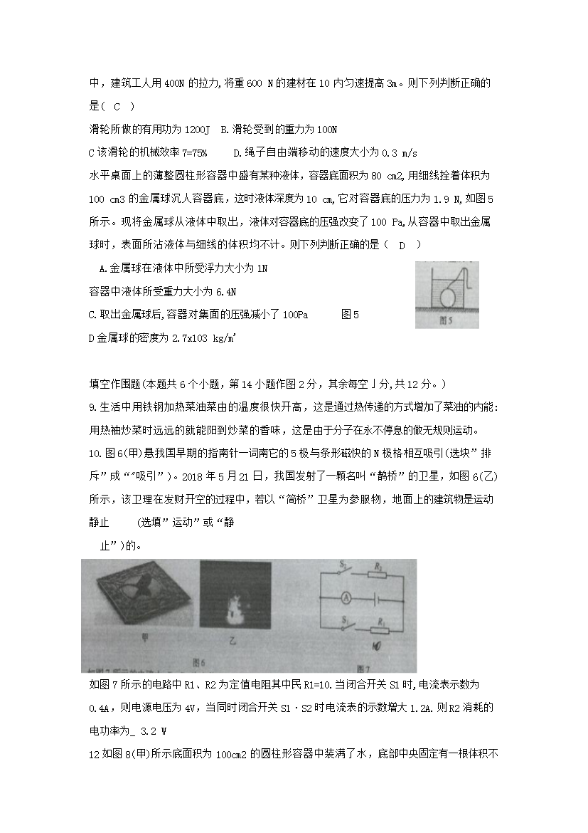 【文档名称】 2018年重庆渝中中考物理真题及答案B卷(Word版).doc