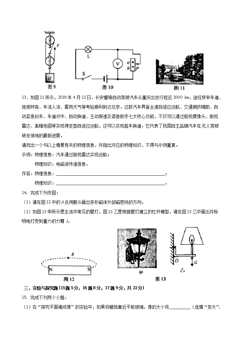 【文档名称】 2016年重庆九龙坡中考物理试题及答案A卷(Word版).doc