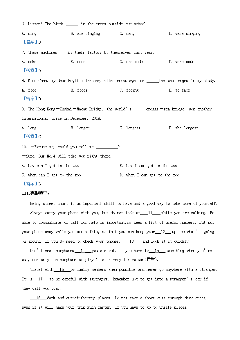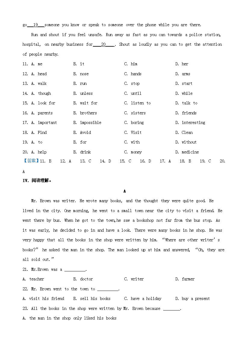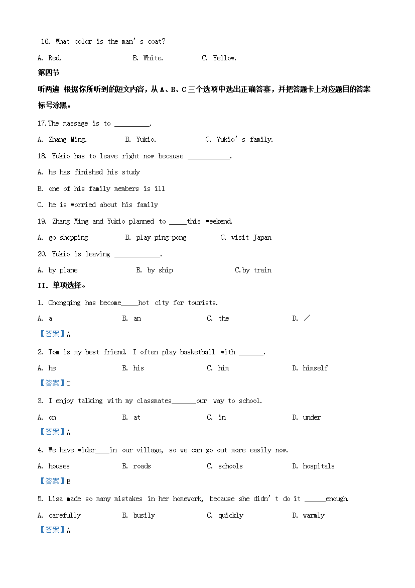 【文档名称】 2019年重庆渝中中考英语真题及答案B卷(Word版).doc