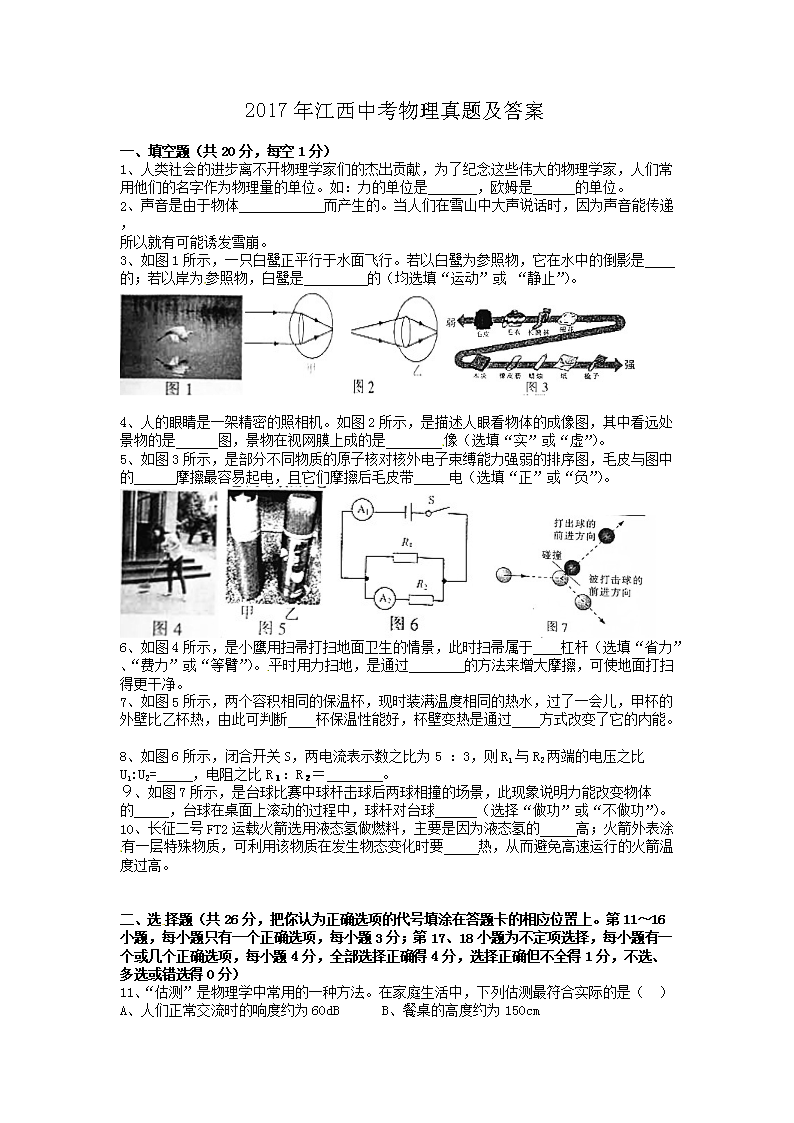 【文档名称】 2017年江西中考物理真题及答案(Word版).doc