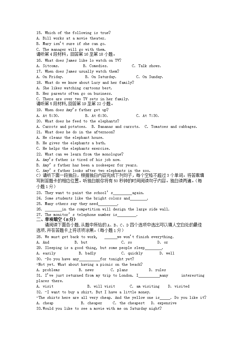 【文档预览】 无忧考网整理发布2017年江西中考英语真题及答案(Word版),前五页预览如下: