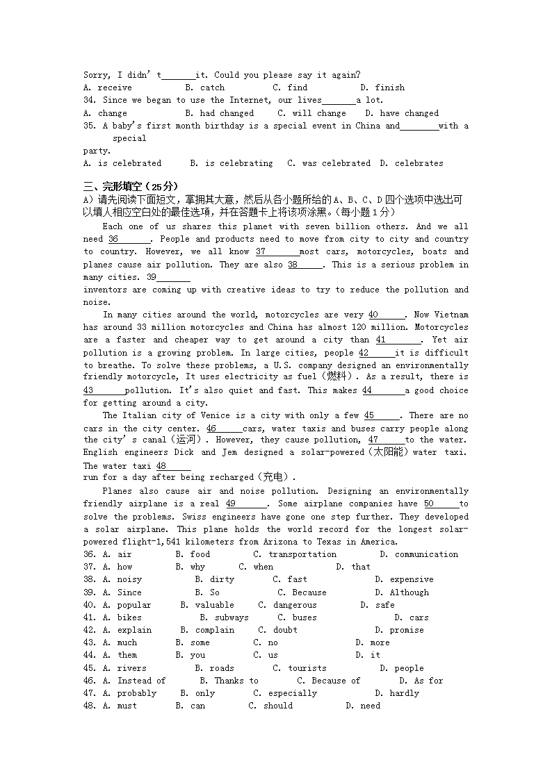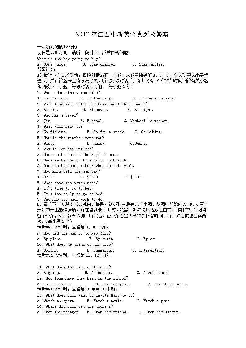 【文档名称】 2017年江西中考英语真题及答案(Word版).doc