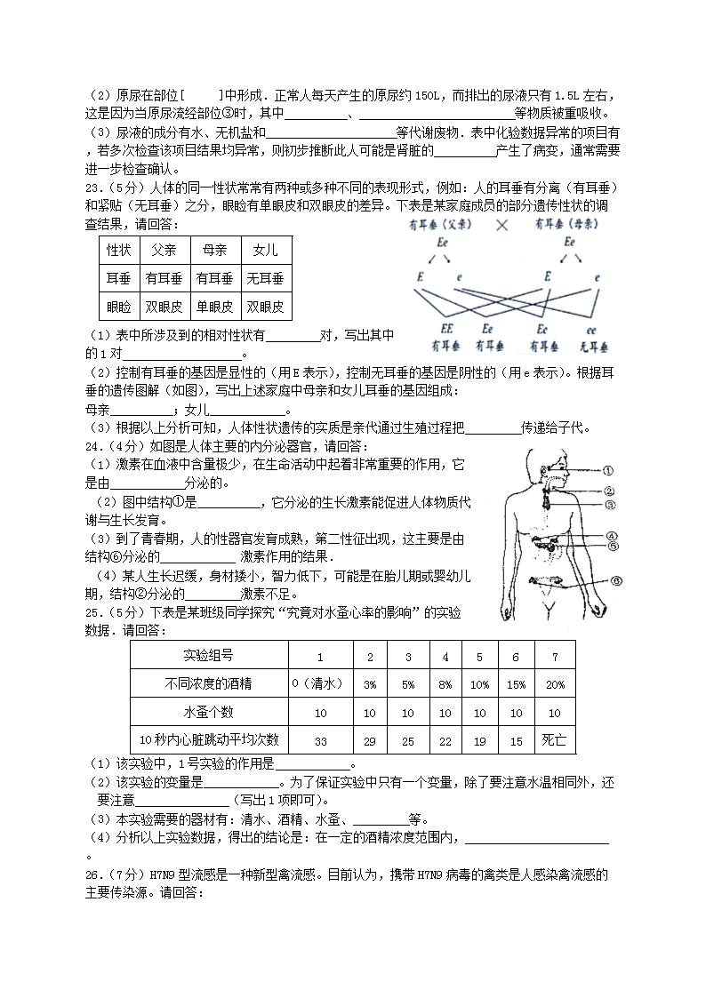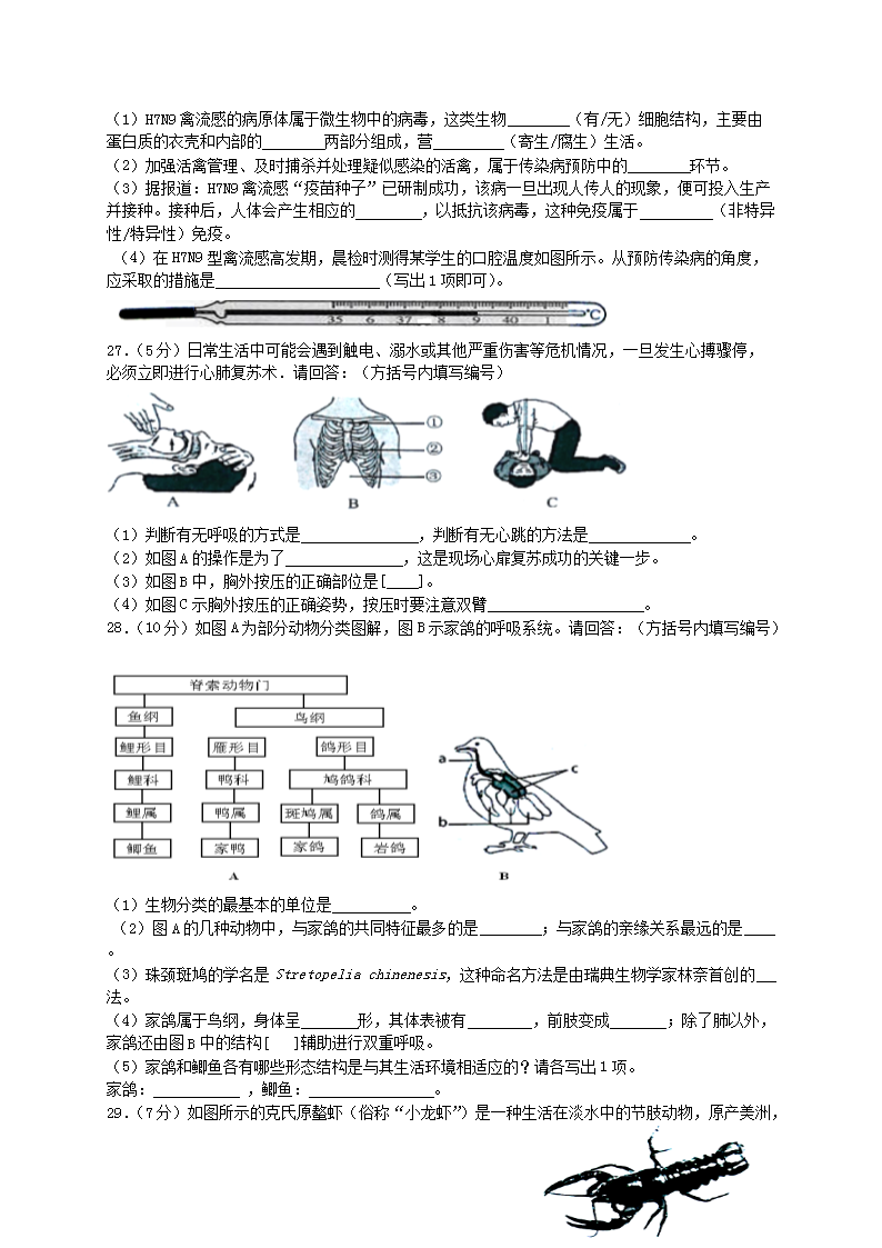 【文档名称】 2015年上海杨浦中考生物真题及答案(Word版).doc