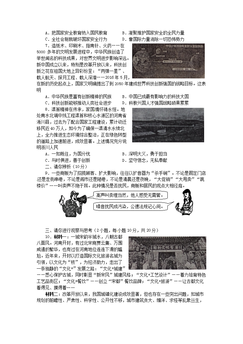 【文档名称】 2016年河南三门峡中考道德与法治真题及答案(Word版).doc
