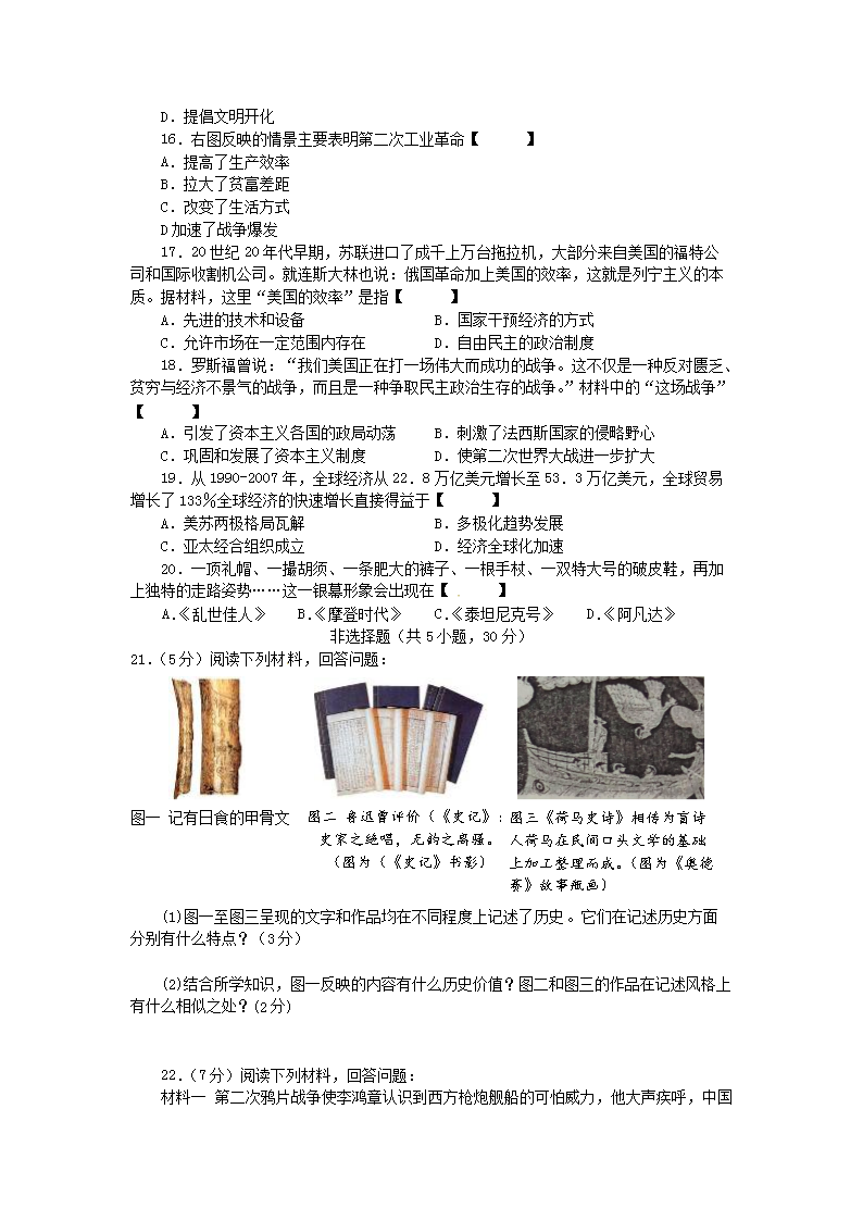 【文档名称】 2016年河南开封中考历史真题及答案(Word版).doc