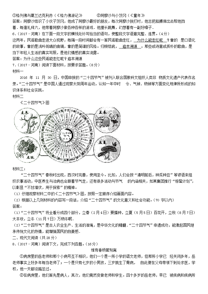 【文档名称】 2017年河南新乡中考语文真题及答案(Word版).doc
