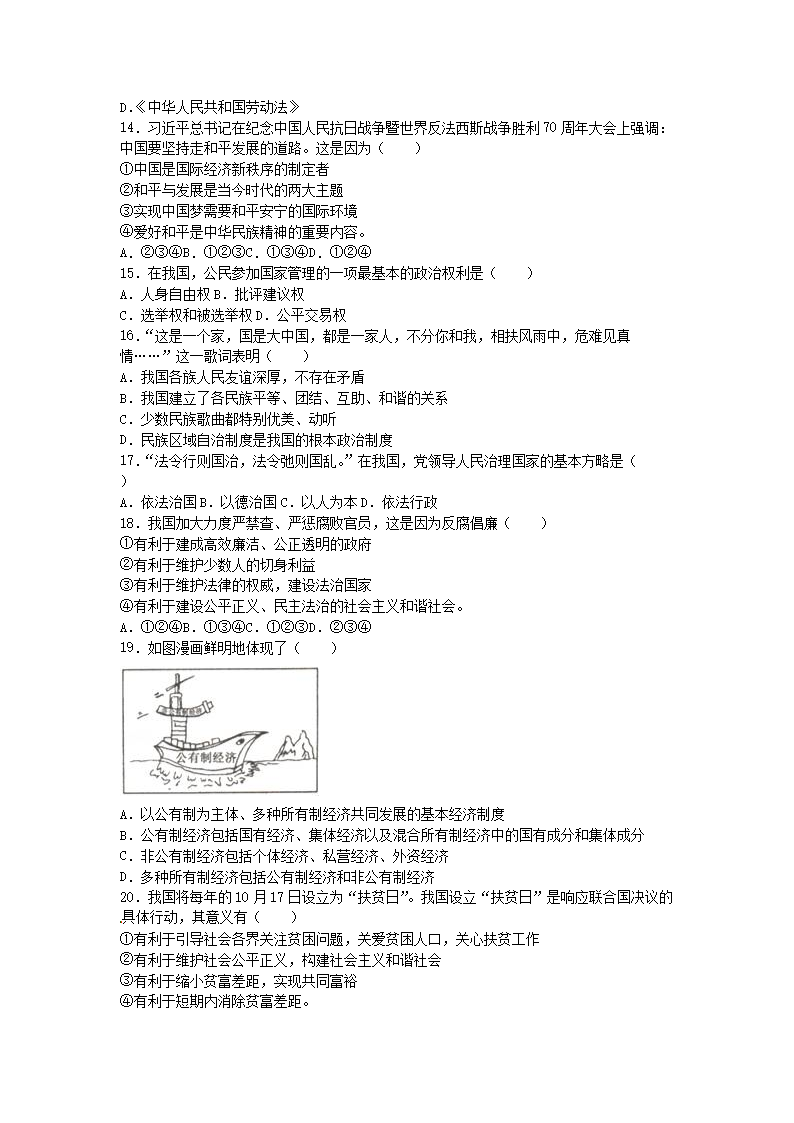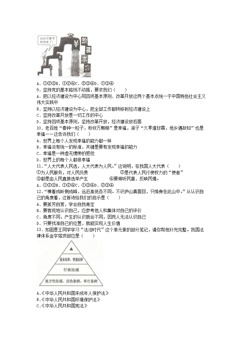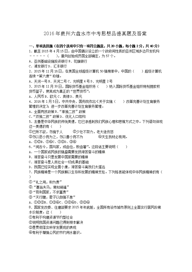 【文档名称】 2016年贵州六盘水市中考思想品德真题及答案(Word版).doc