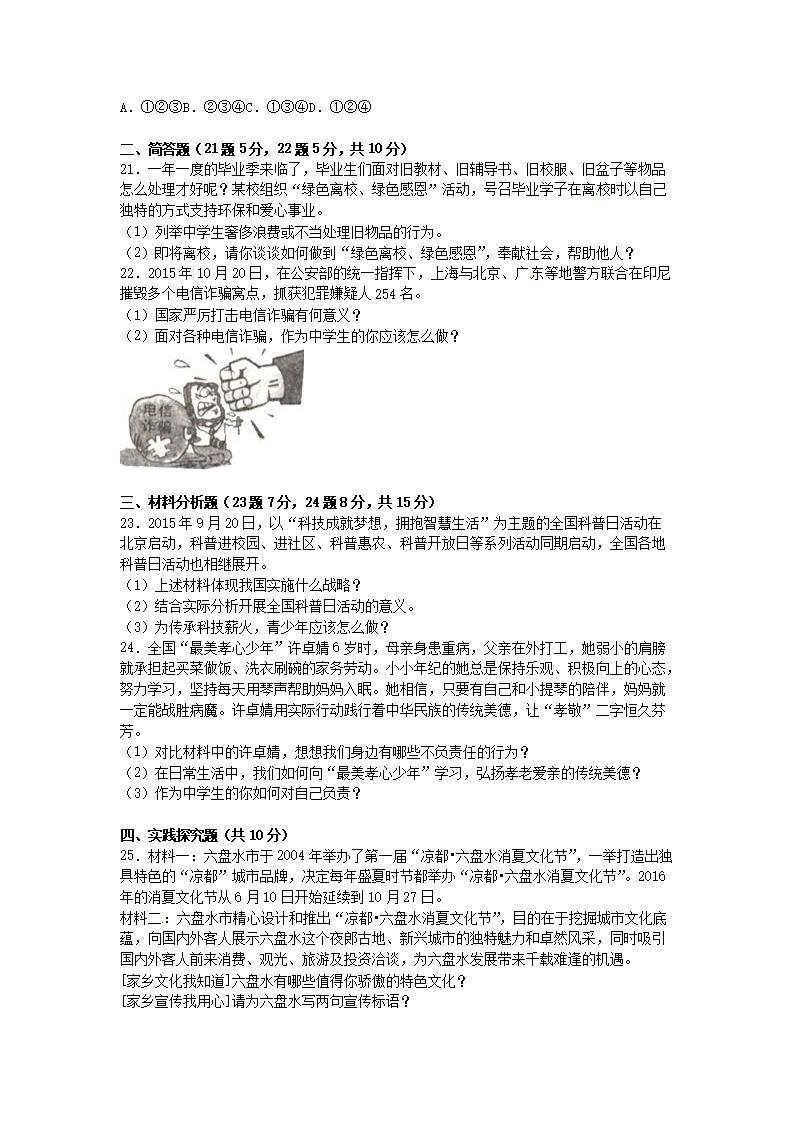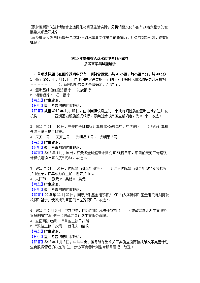 【文档预览】 无忧考网整理发布2016年贵州六盘水市中考思想品德真题及答案(Word版),前五页预览如下: