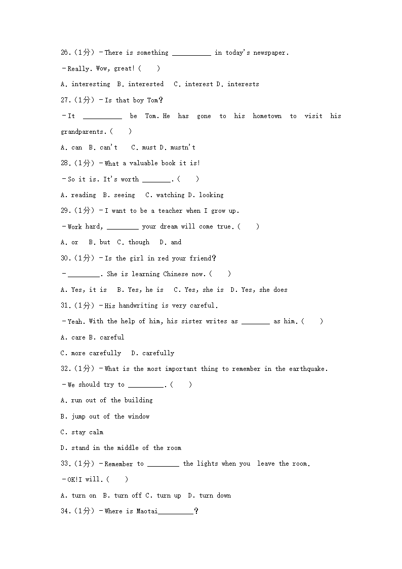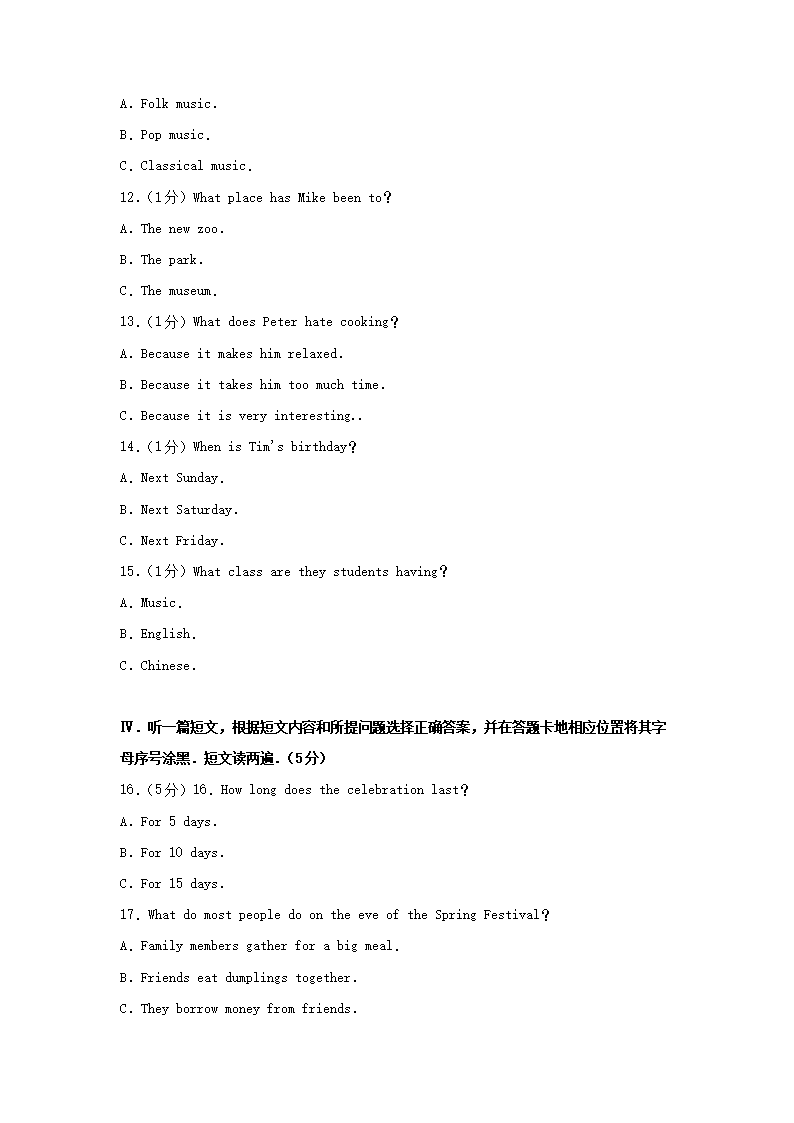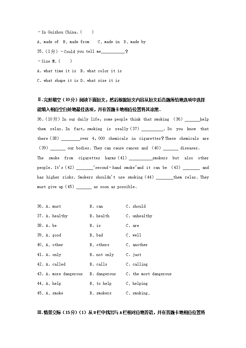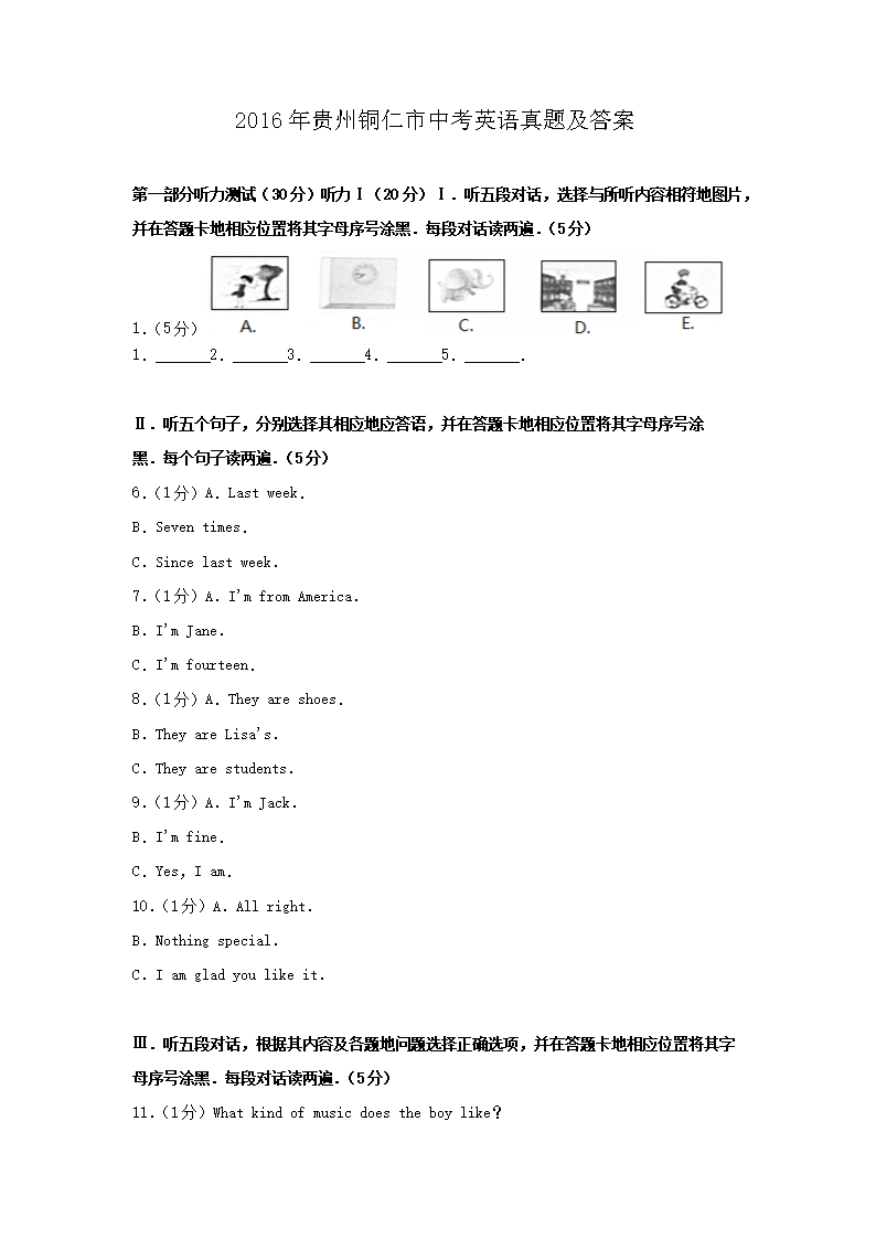 【文档名称】 2016年贵州铜仁市中考英语真题及答案(Word版).doc
