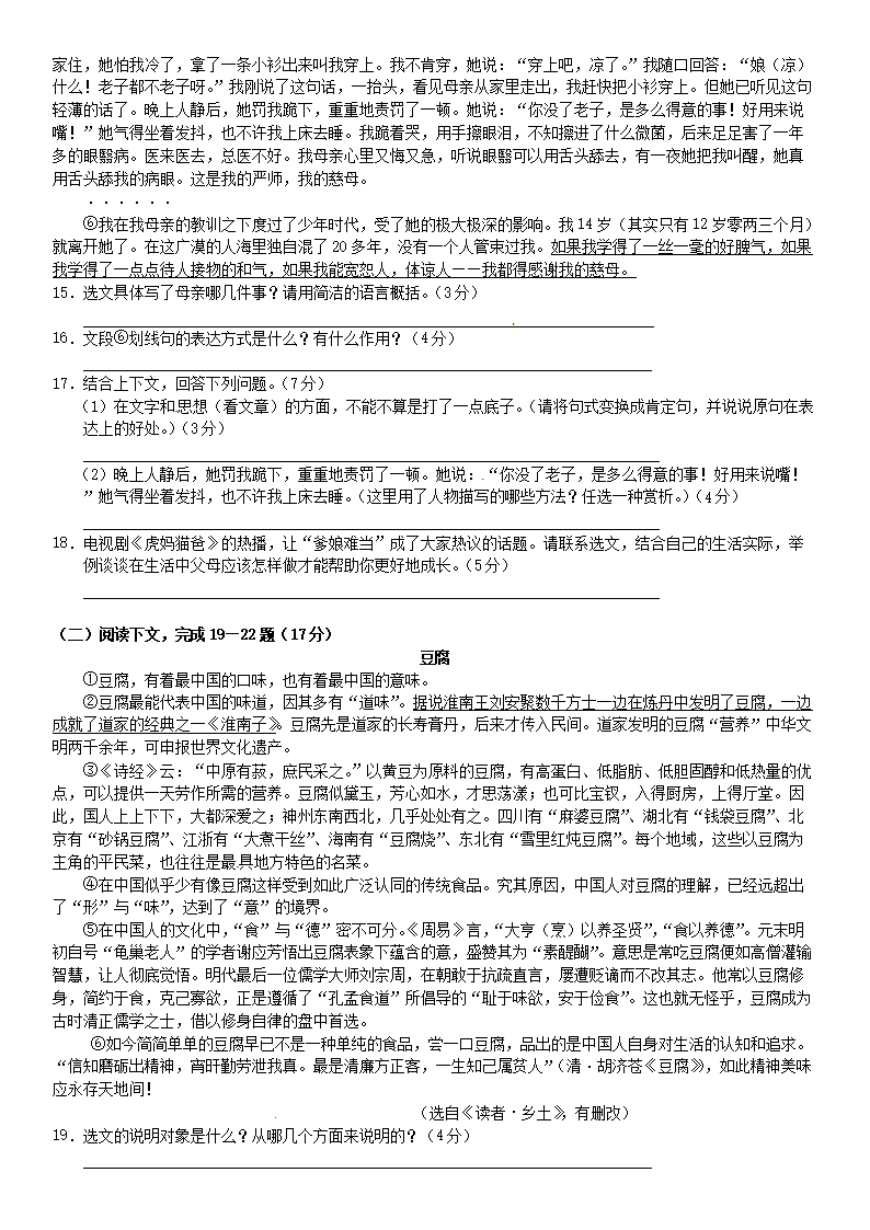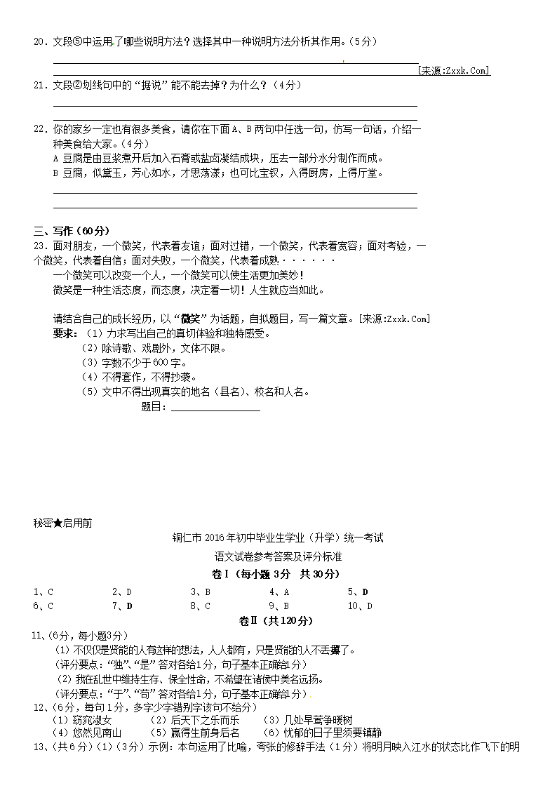 【文档预览】 无忧考网整理发布2016年贵州铜仁中考语文真题及答案(Word版),前五页预览如下: