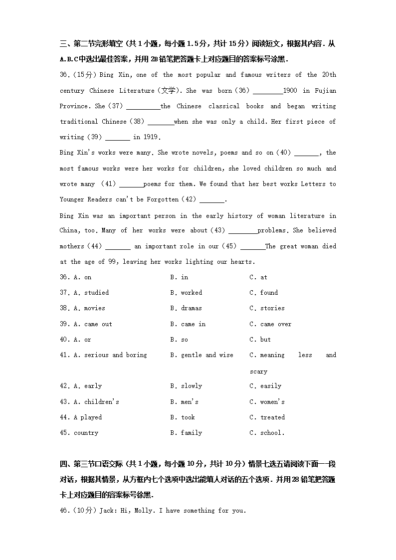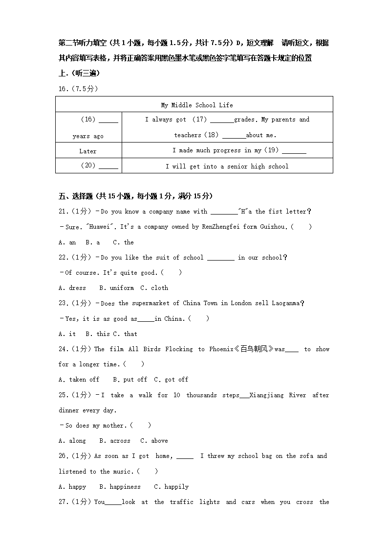 【文档预览】 无忧考网整理发布2016年贵州遵义市中考英语真题及答案(Word版),前五页预览如下:
