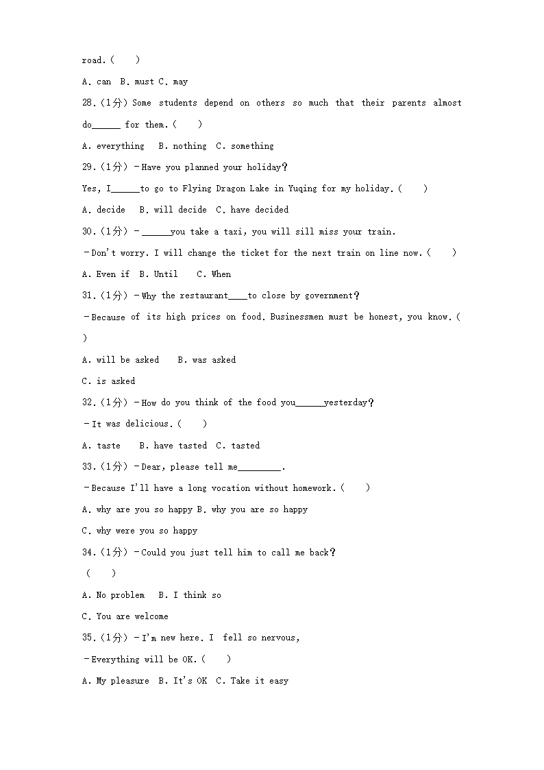 【文档名称】 2016年贵州遵义市中考英语真题及答案(Word版).doc