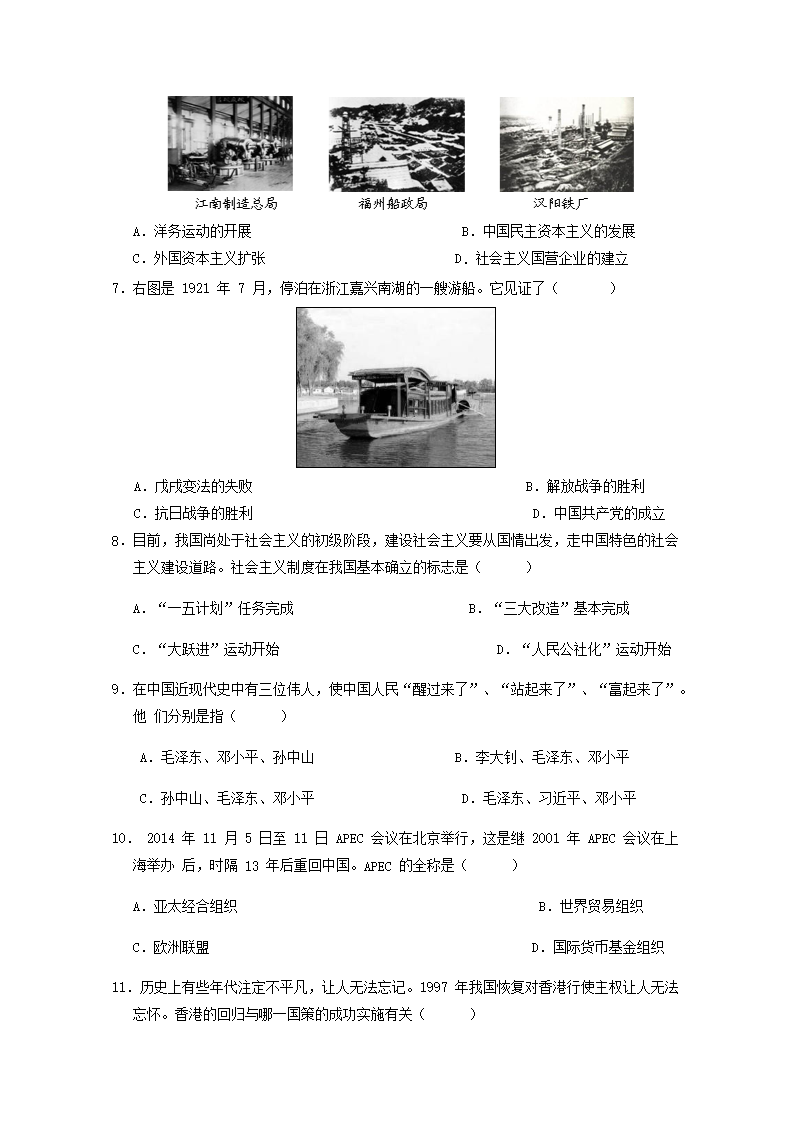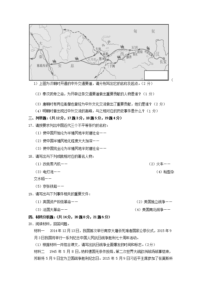 【文档名称】 2015年贵州黔东南中考历史真题及答案(Word版).doc