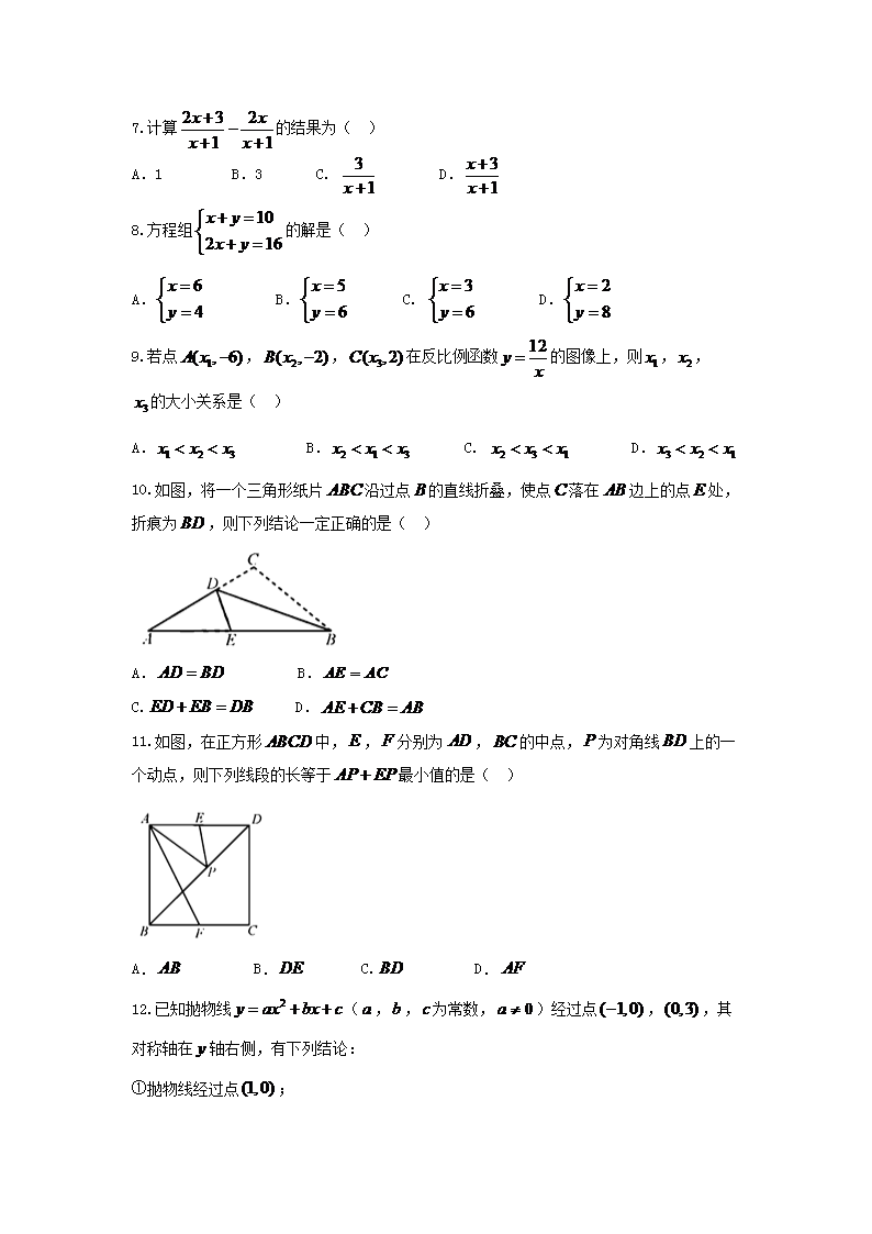 【文档名称】 2018天津宝坻中考数学真题及答案(Word版).doc