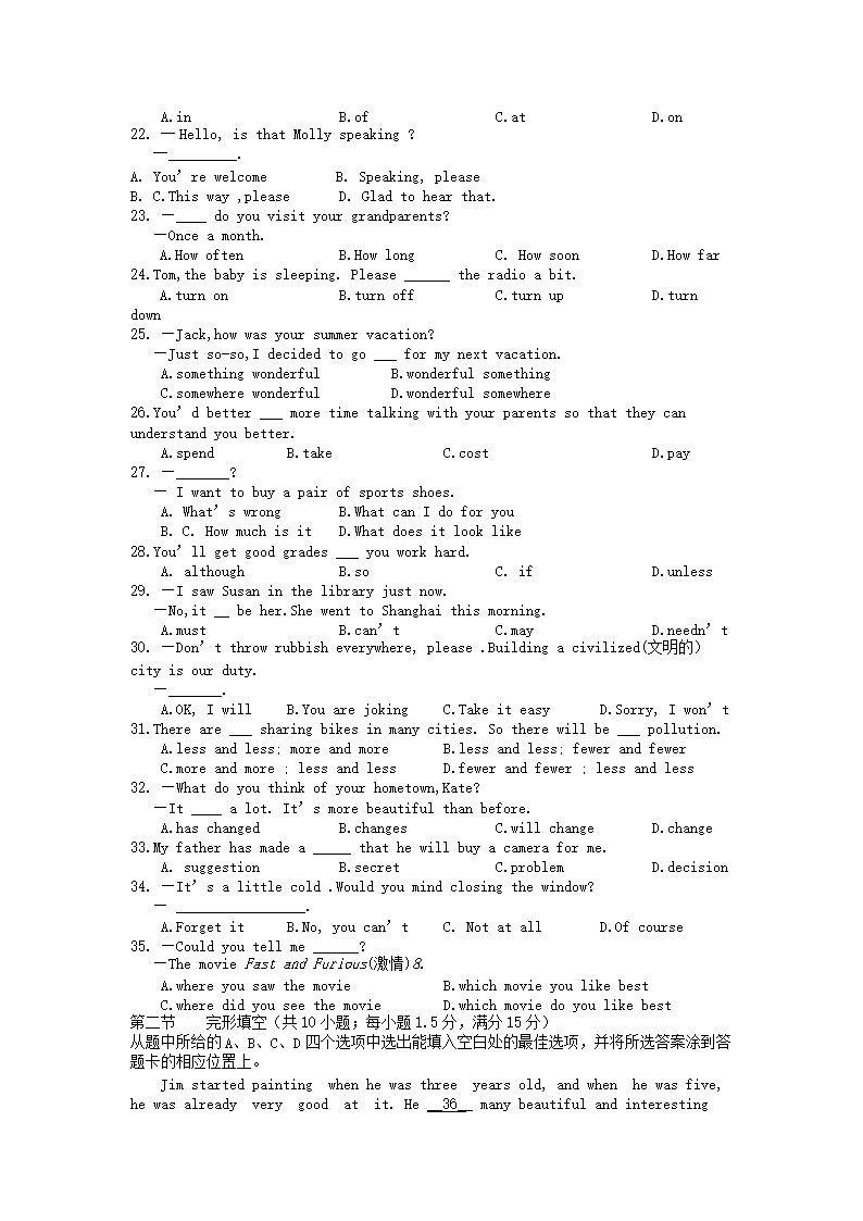 【文档名称】 2017年云南昭通中考英语真题及答案(Word版).doc