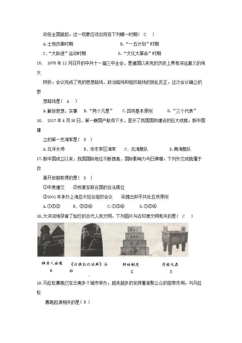 【文档名称】 2017年云南文山中考历史真题及答案(Word版).doc