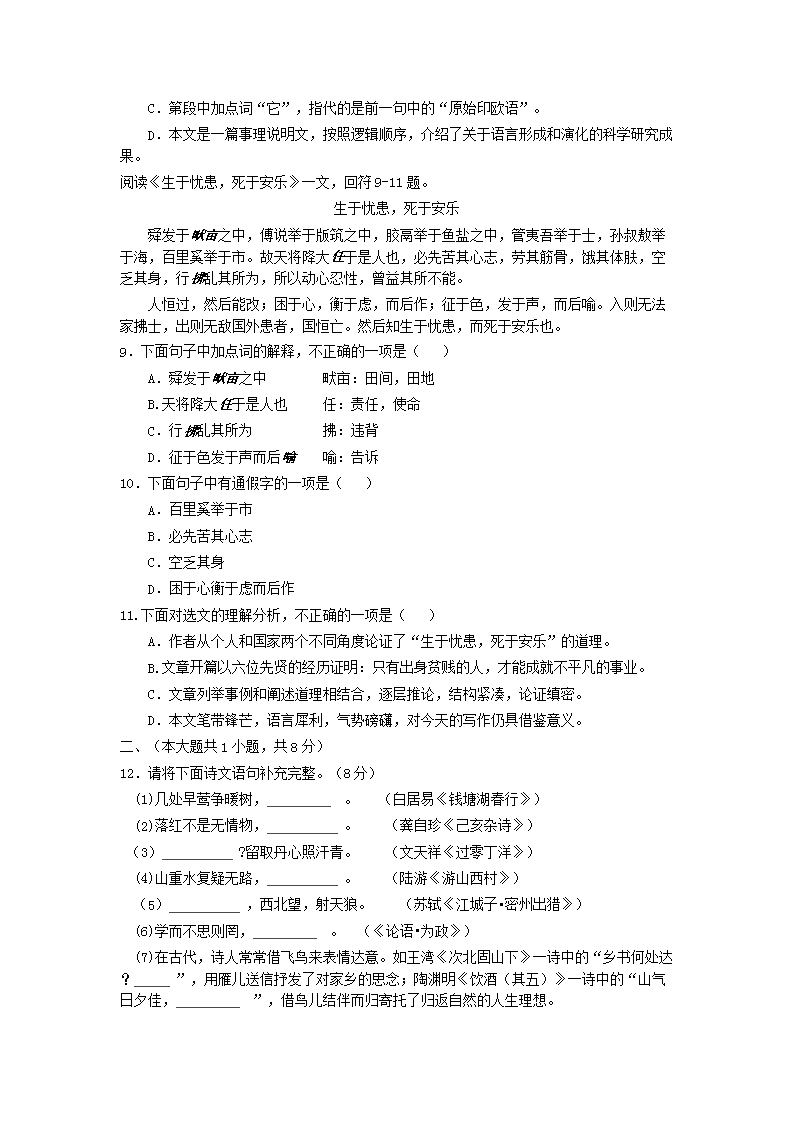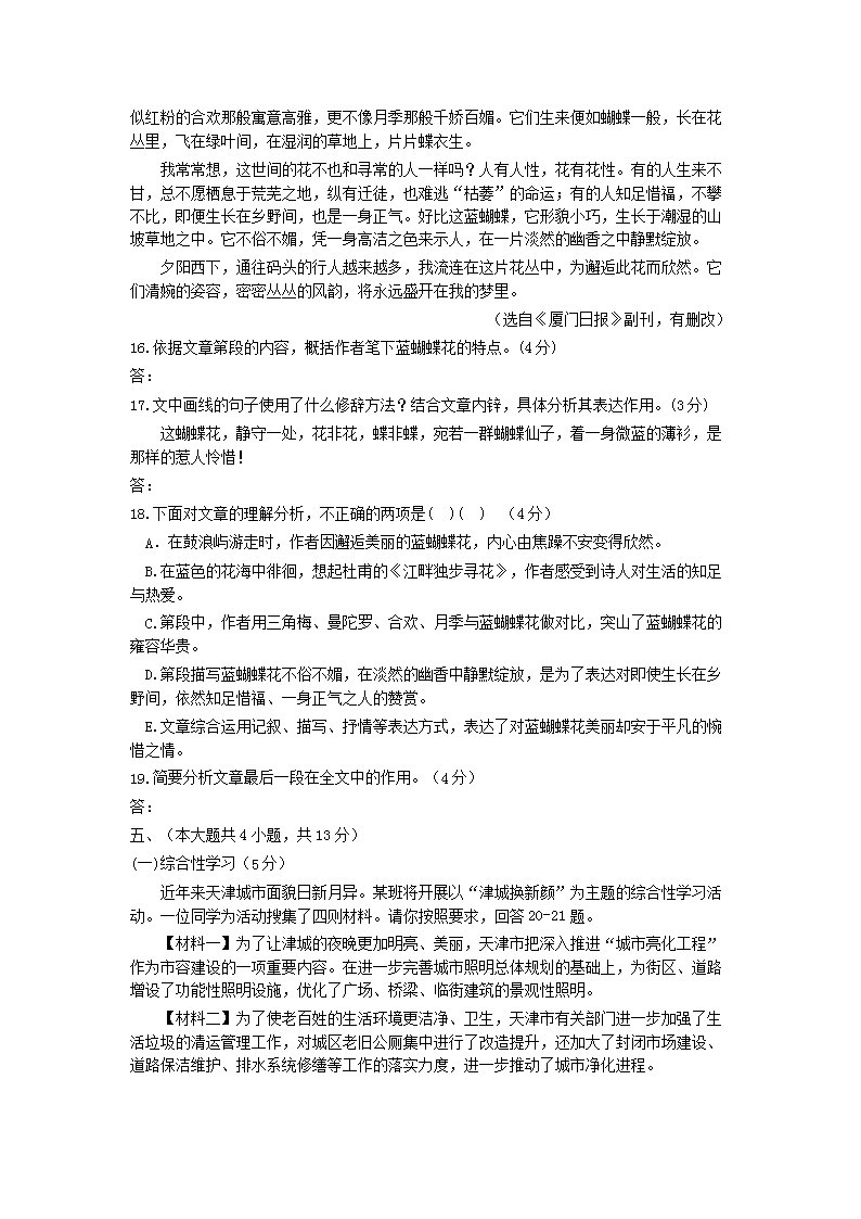 【文档预览】 无忧考网整理发布2018天津大港中考语文真题及答案(Word版),前五页预览如下: