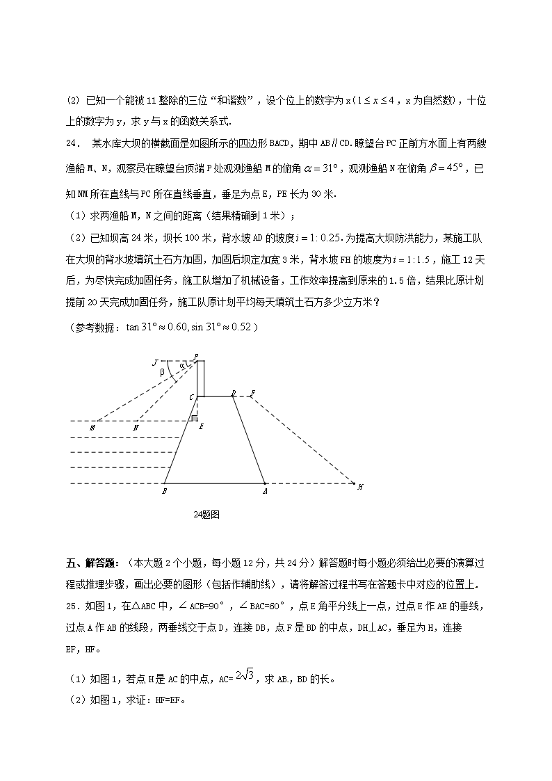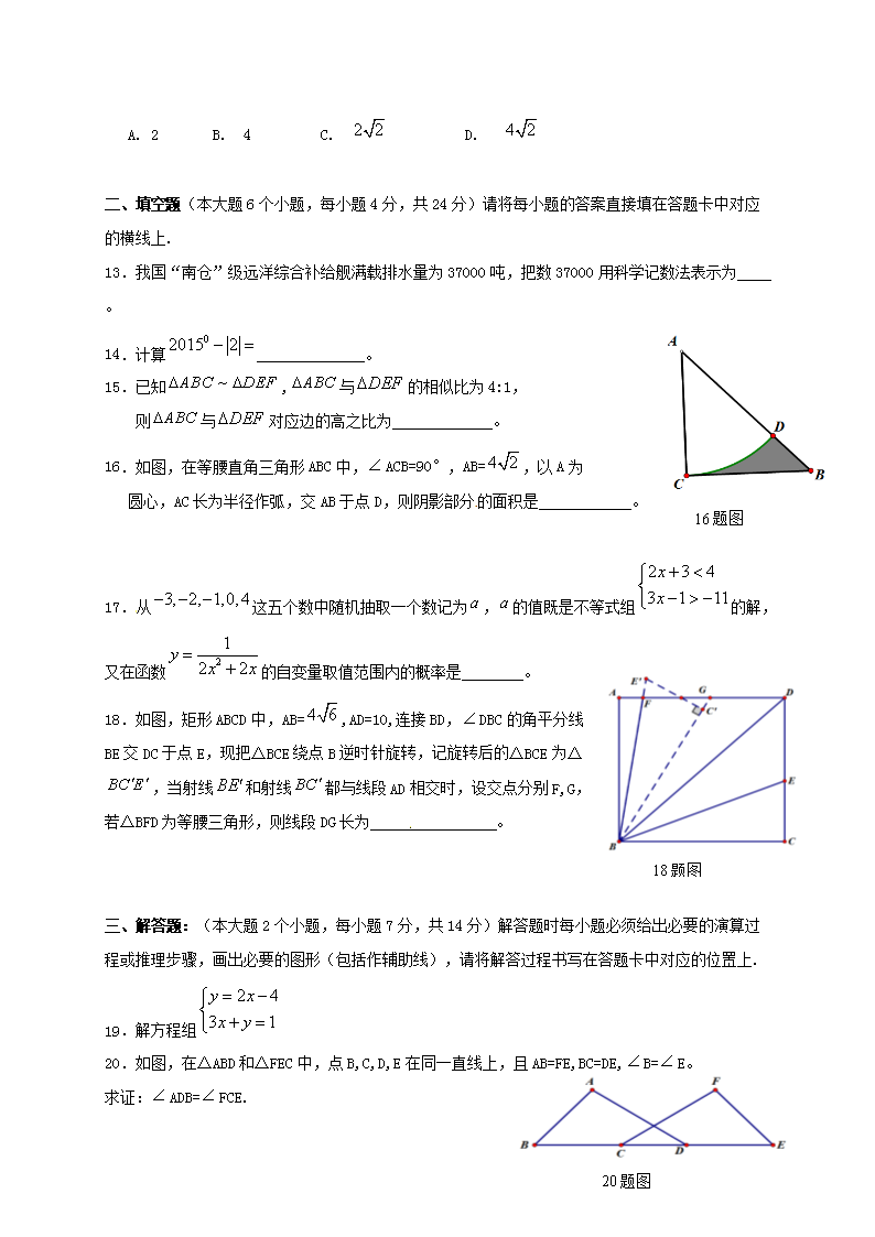 【文档名称】 2015年重庆巴南中考数学真题及答案A卷(Word版).doc