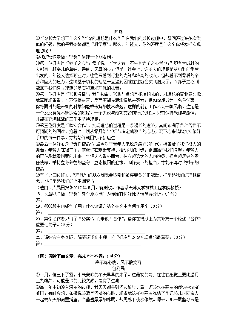 【文档预览】 无忧考网整理发布2017年云南玉溪中考语文真题及答案(Word版),前五页预览如下: