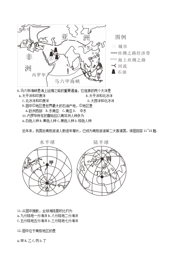 【文档名称】 2018天津和平中考地理真题及答案(Word版).doc