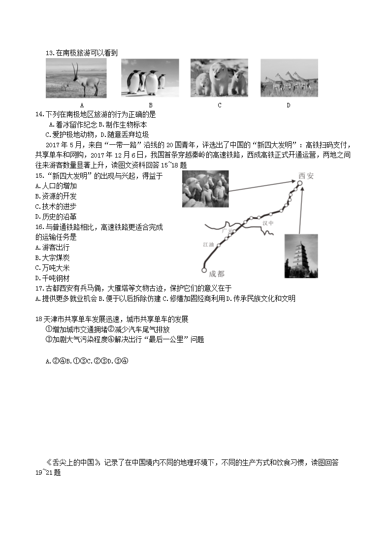 【文档预览】 无忧考网整理发布2018天津和平中考地理真题及答案(Word版),前五页预览如下: