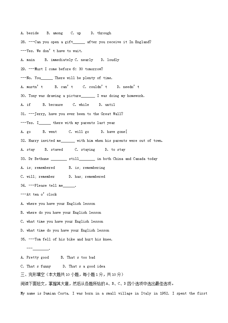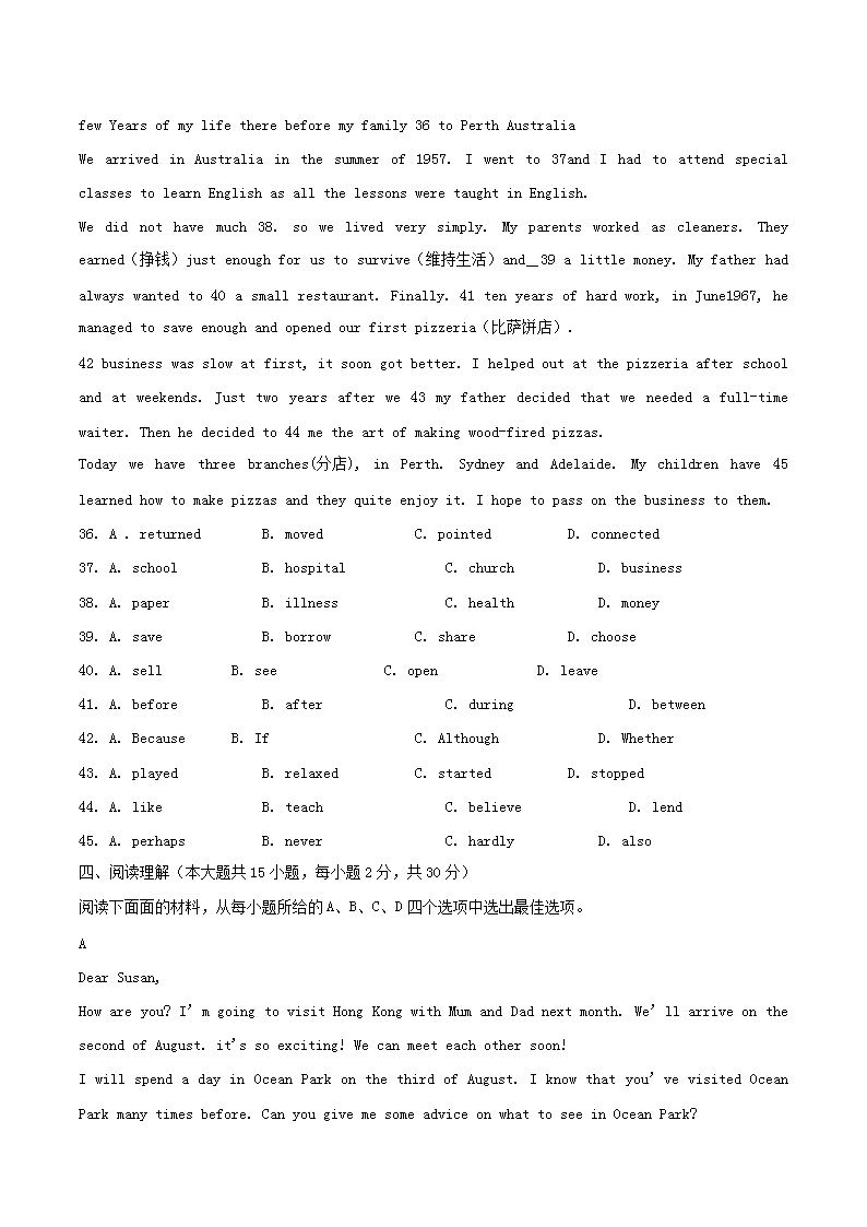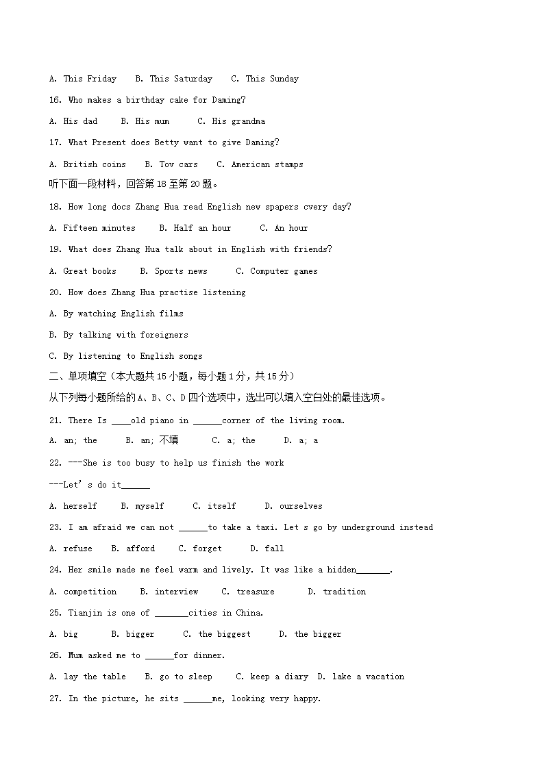 【文档名称】 2018天津和平中考英语真题及答案(Word版).doc
