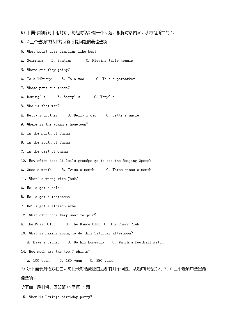 【文档预览】 无忧考网整理发布2018天津和平中考英语真题及答案(Word版),前五页预览如下: