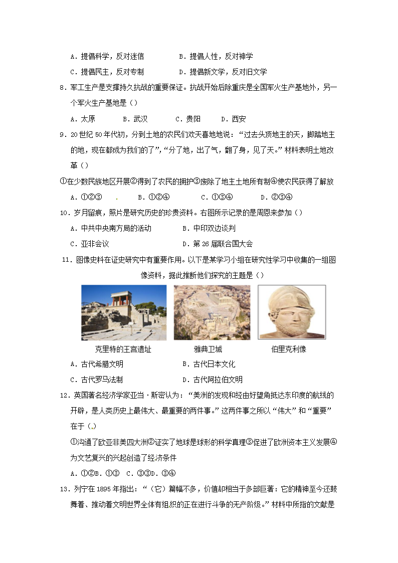 【文档名称】 2016年重庆巴南中考历史真题及答案A卷(Word版).doc
