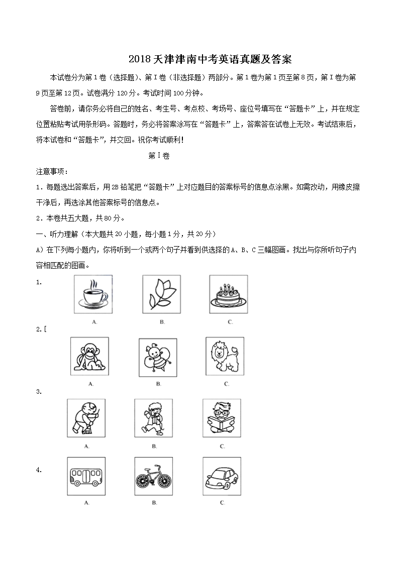 【文档名称】 2018天津津南中考英语真题及答案(Word版).doc