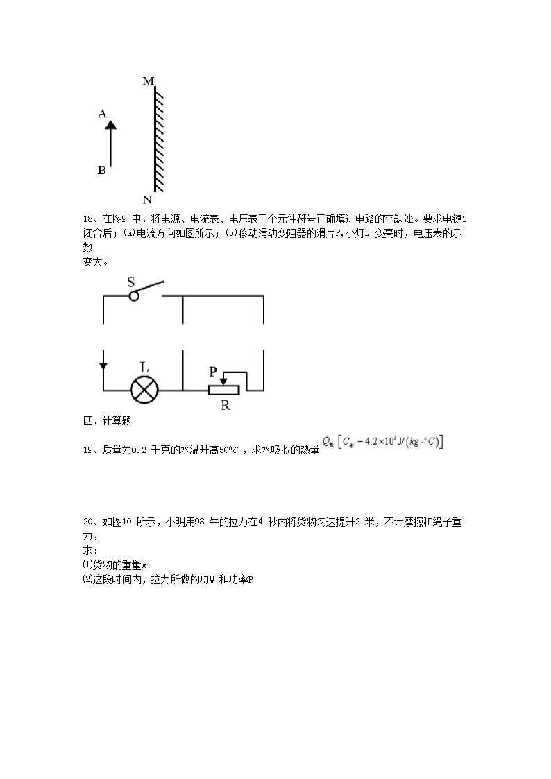 【文档名称】 2015年上海金山中考物理真题及答案(Word版).doc