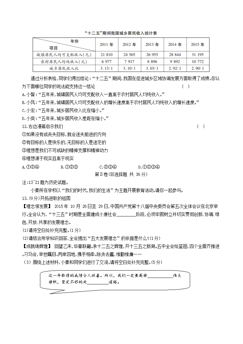 【文档名称】 2016年陕西省渭南中考政治真题及答案(Word版).doc