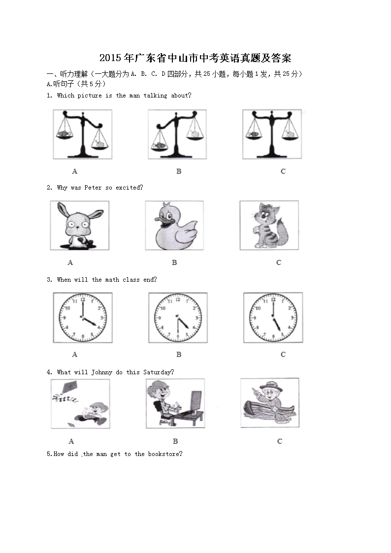 【文档名称】 2015年广东省中山市中考英语真题及答案(Word版).doc