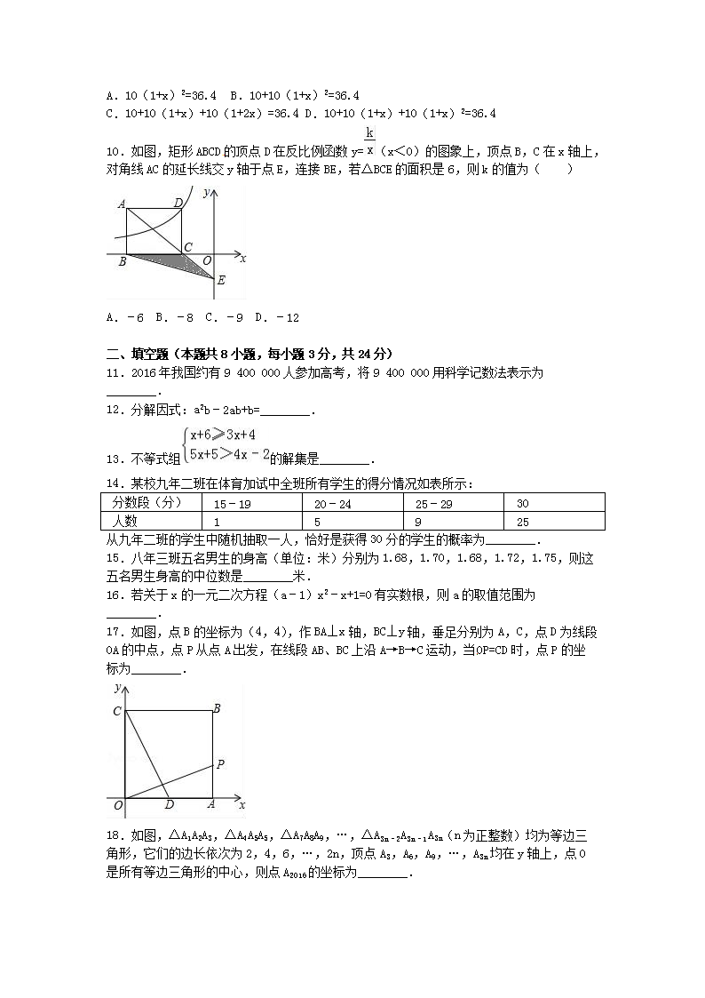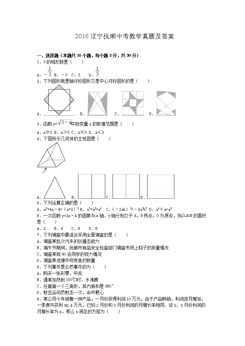 【文档名称】 2016辽宁抚顺中考数学真题及答案(Word版).doc