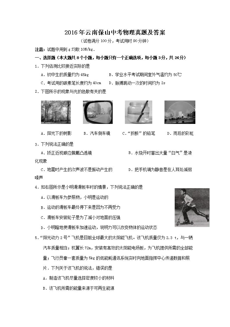【文档预览】 无忧考网整理发布2016年云南保山中考化学真题及答案(Word版),前五页预览如下: