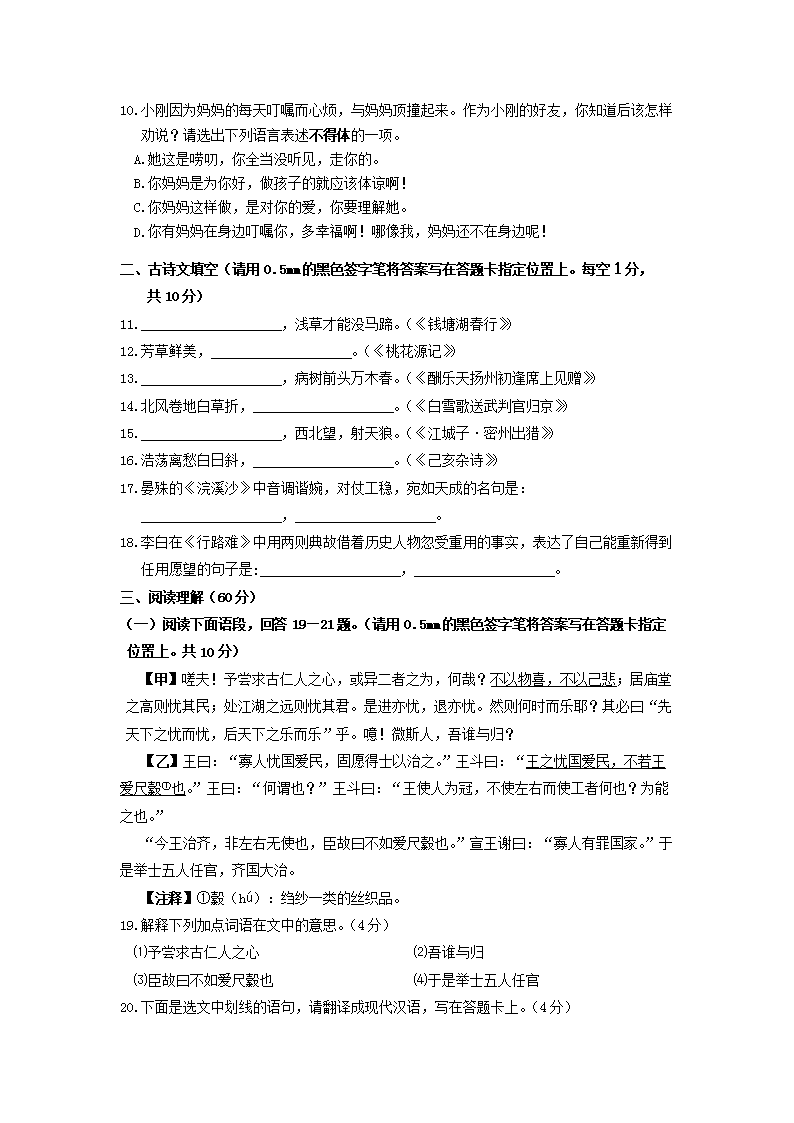 【文档预览】 无忧考网整理发布2015辽宁丹东中考语文真题及答案(Word版),前五页预览如下:
