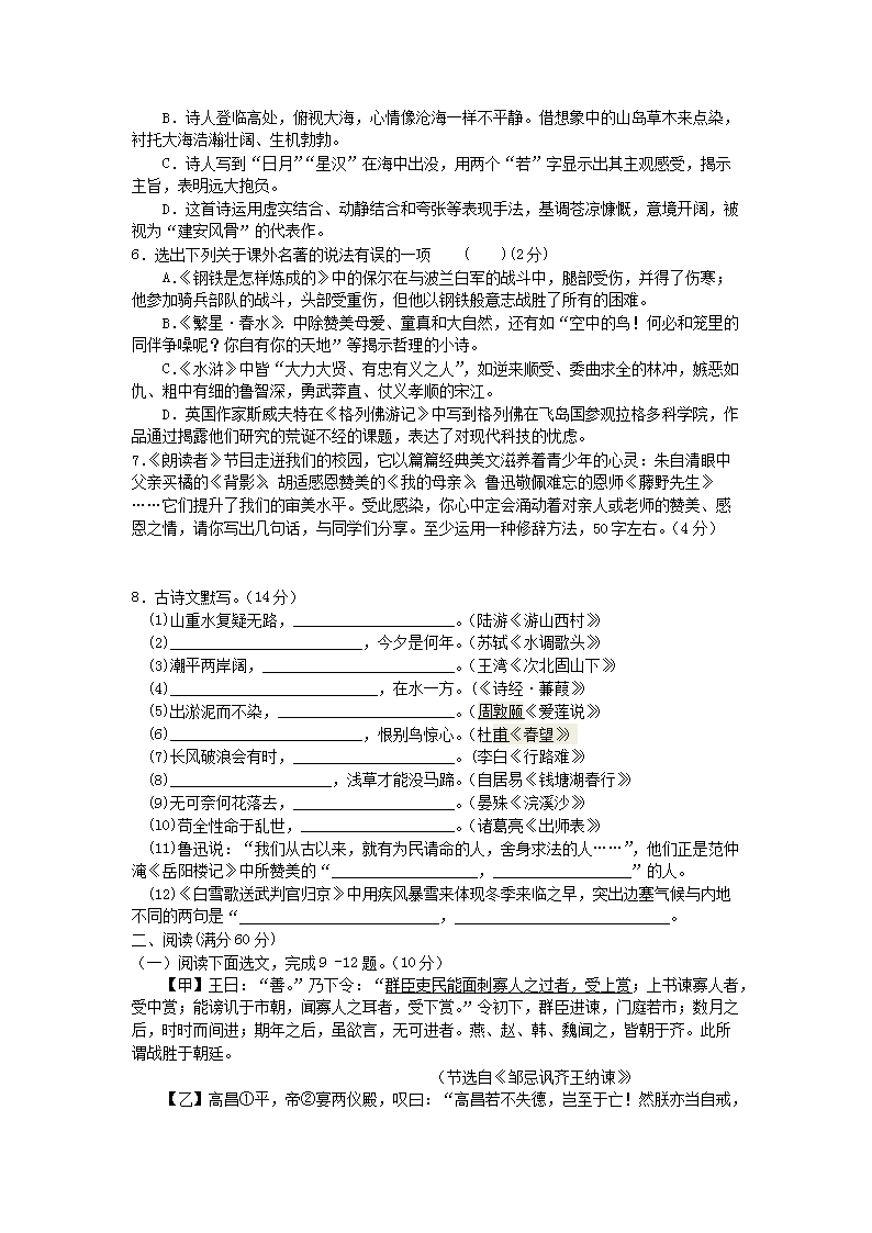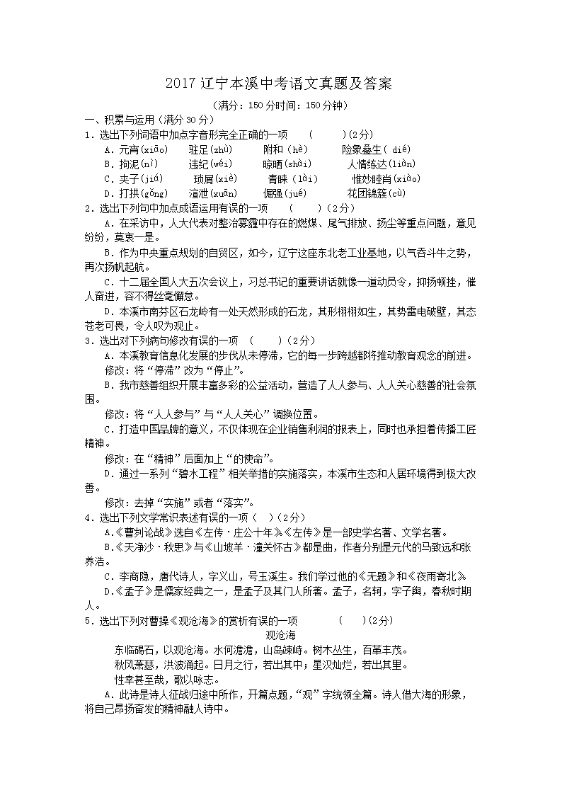 【文档预览】 无忧考网整理发布2017辽宁本溪中考语文真题及答案(Word版),前五页预览如下: