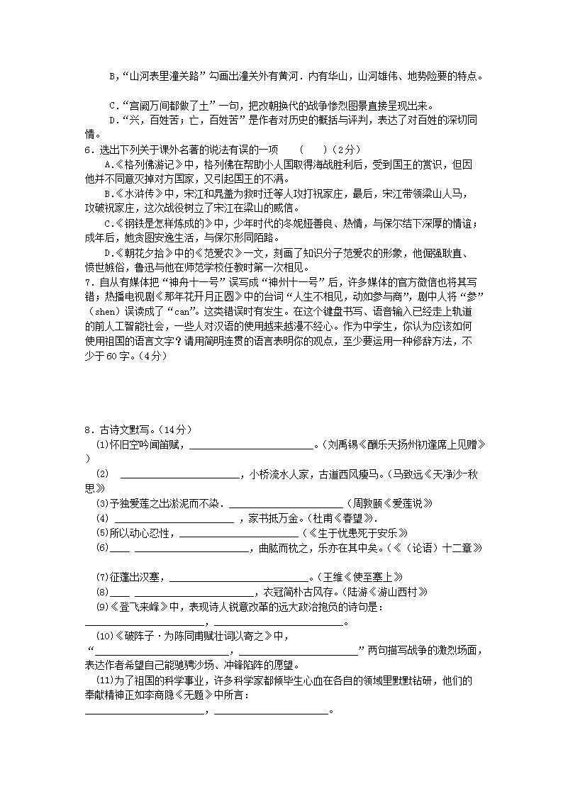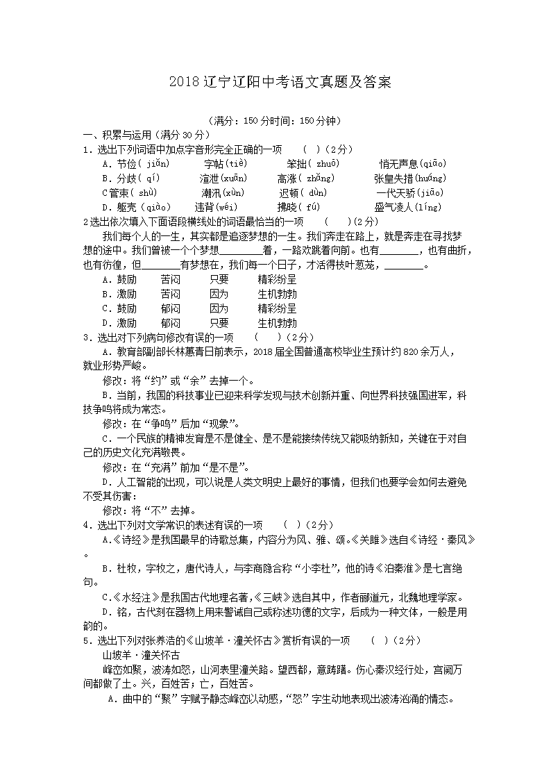 【文档预览】 无忧考网整理发布2018辽宁辽阳中考语文真题及答案(Word版),前五页预览如下: