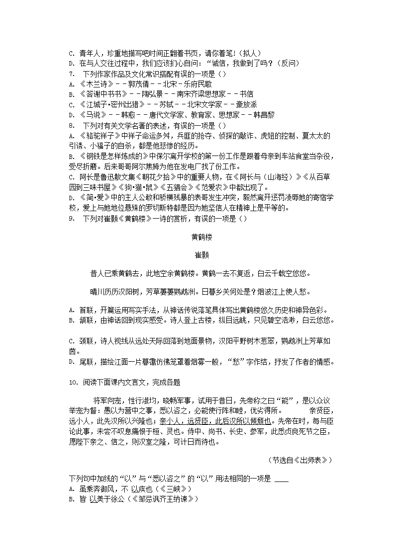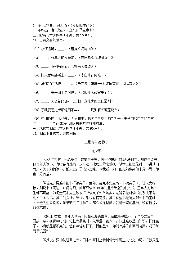 【文档名称】 2019辽宁朝阳中考语文真题及答案(Word版).doc