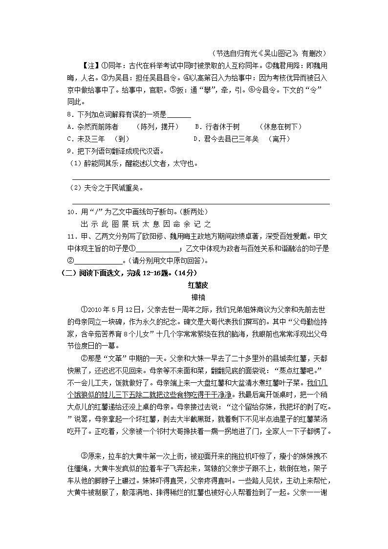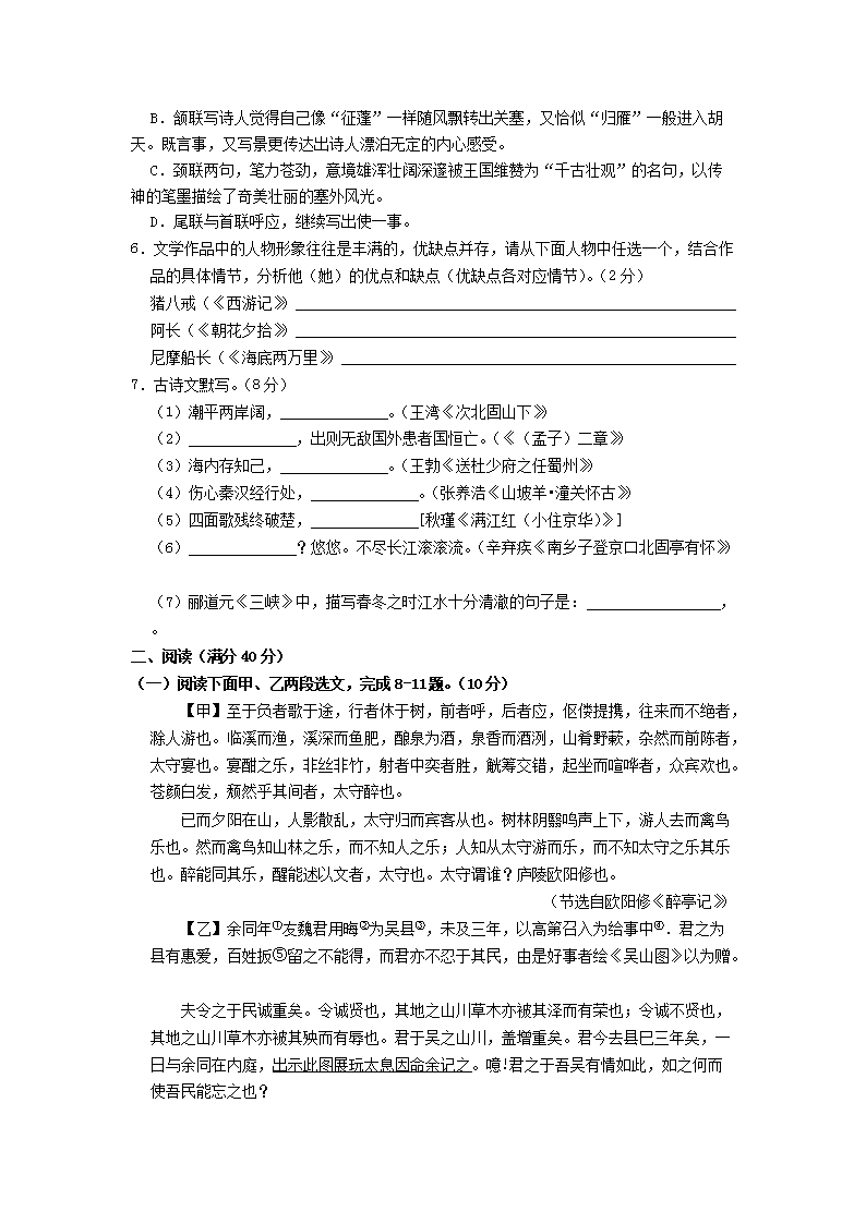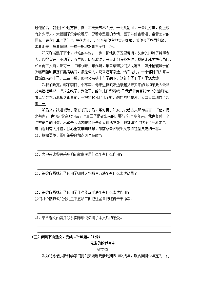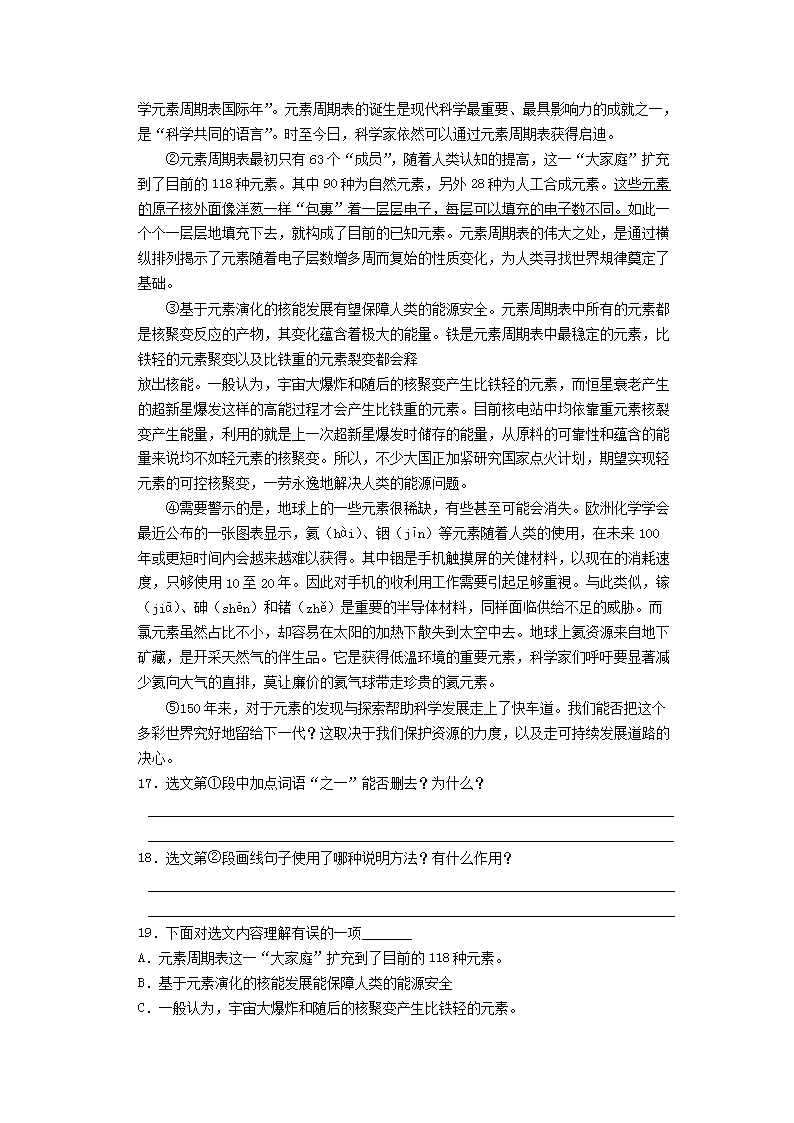 【文档预览】 无忧考网整理发布2019辽宁阜新中考语文真题及答案(Word版),前五页预览如下: