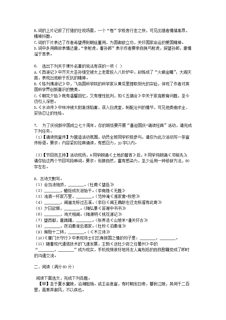 【文档名称】 2019辽宁铁岭中考语文真题及答案(Word版).doc