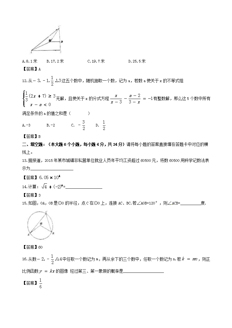 【文档名称】 2016年重庆大渡口中考数学真题及答案A卷(Word版).doc