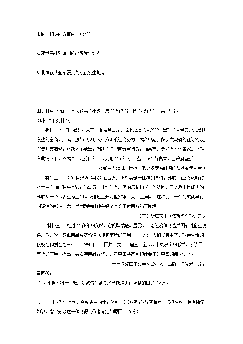 【文档名称】 2015年重庆黔江中考历史真题及答案A卷(Word版).doc