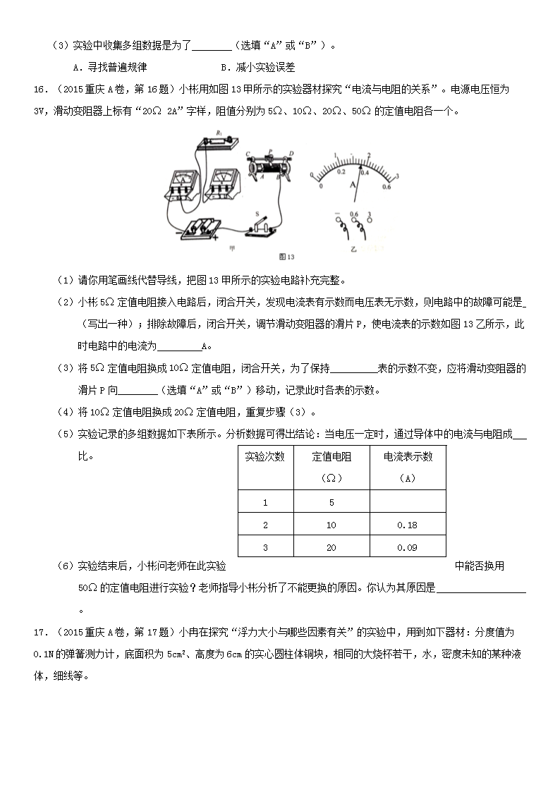 【文档名称】 2015年重庆万州中考物理真题及答案A卷(Word版).doc