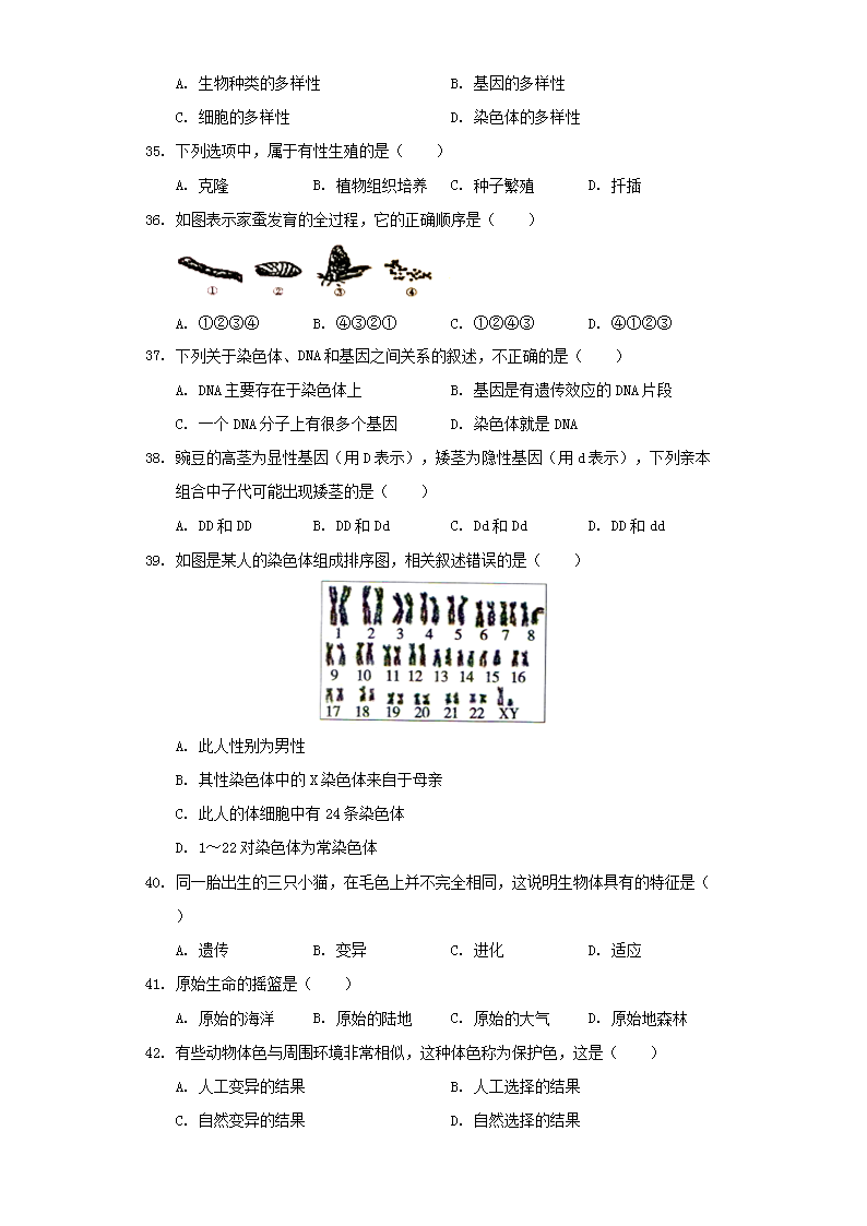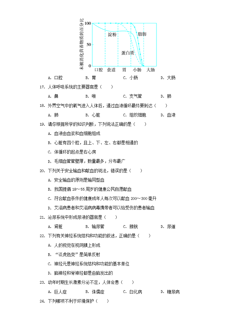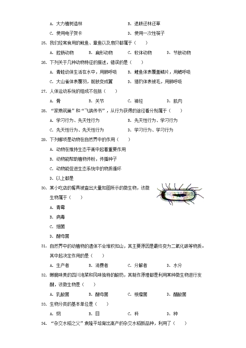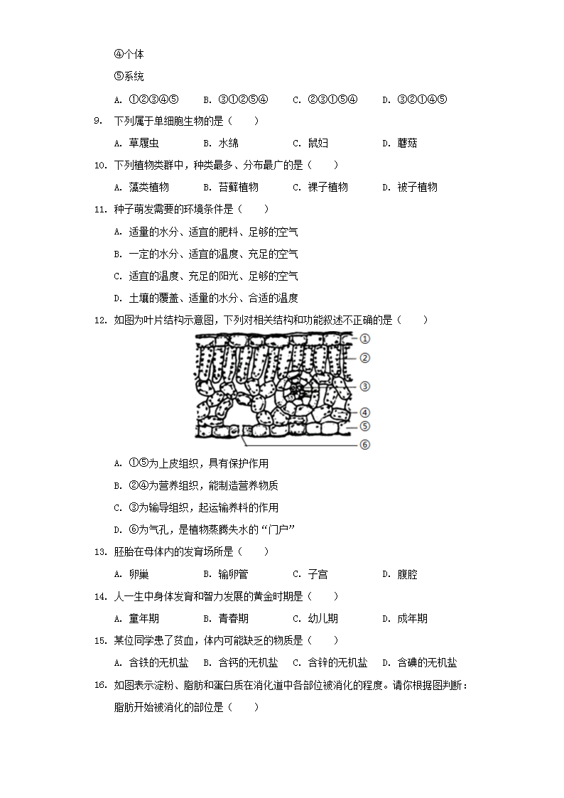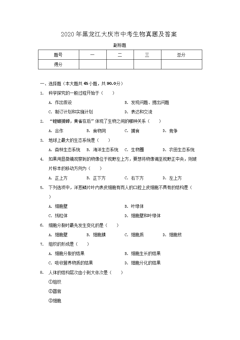 【文档名称】 2020年黑龙江大庆市中考生物真题及答案(Word版).doc