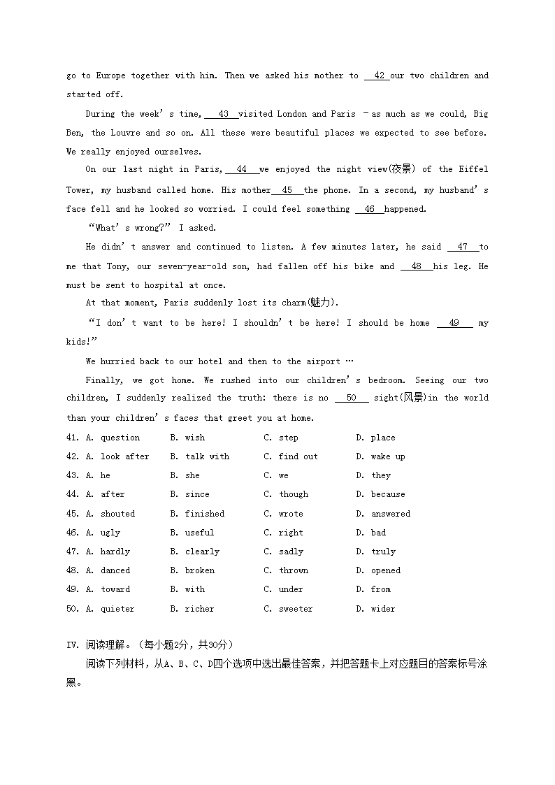 【文档预览】 无忧考网整理发布2015年重庆涪陵中考英语真题及答案A卷(Word版),前五页预览如下: