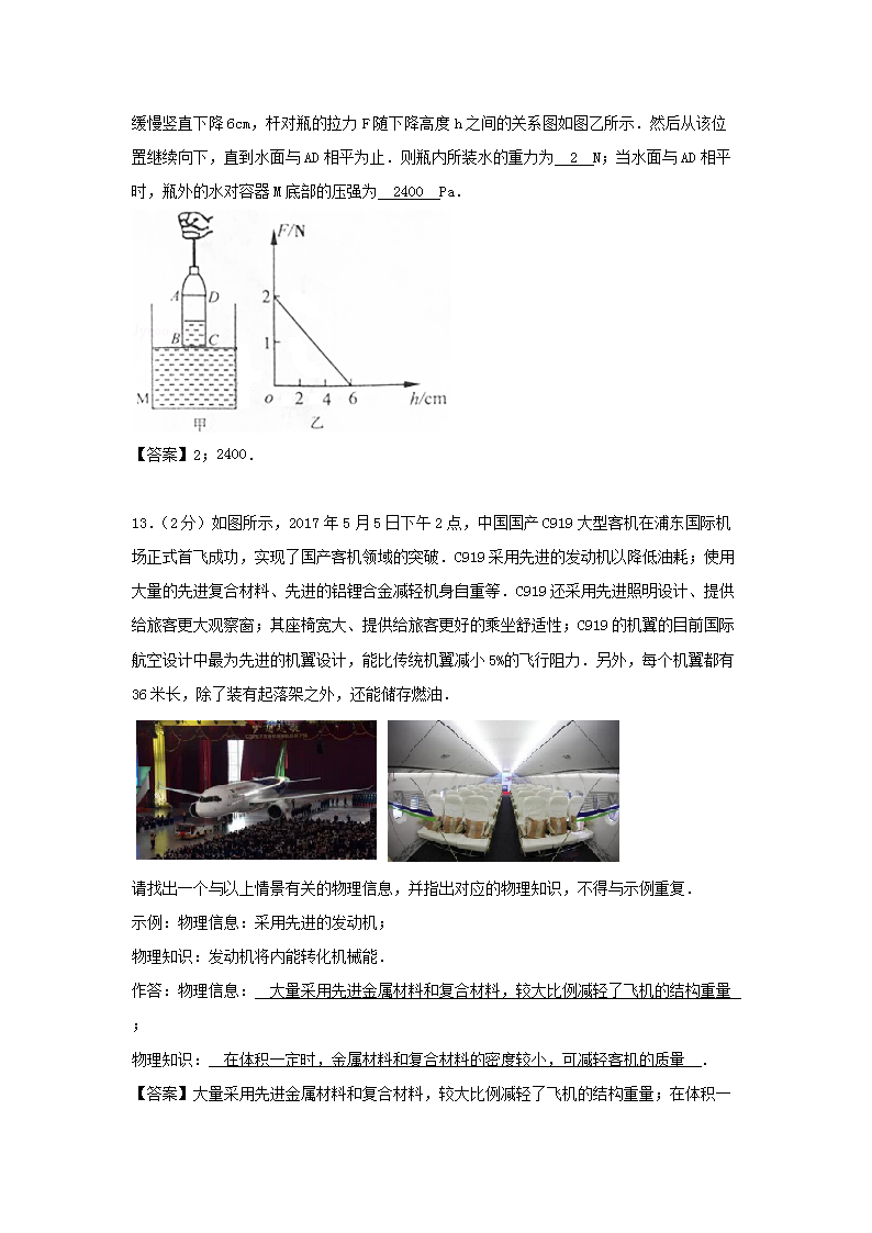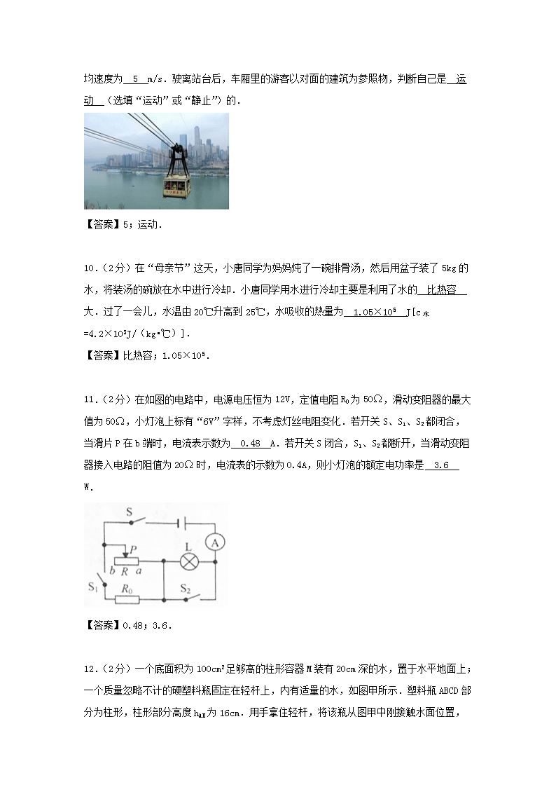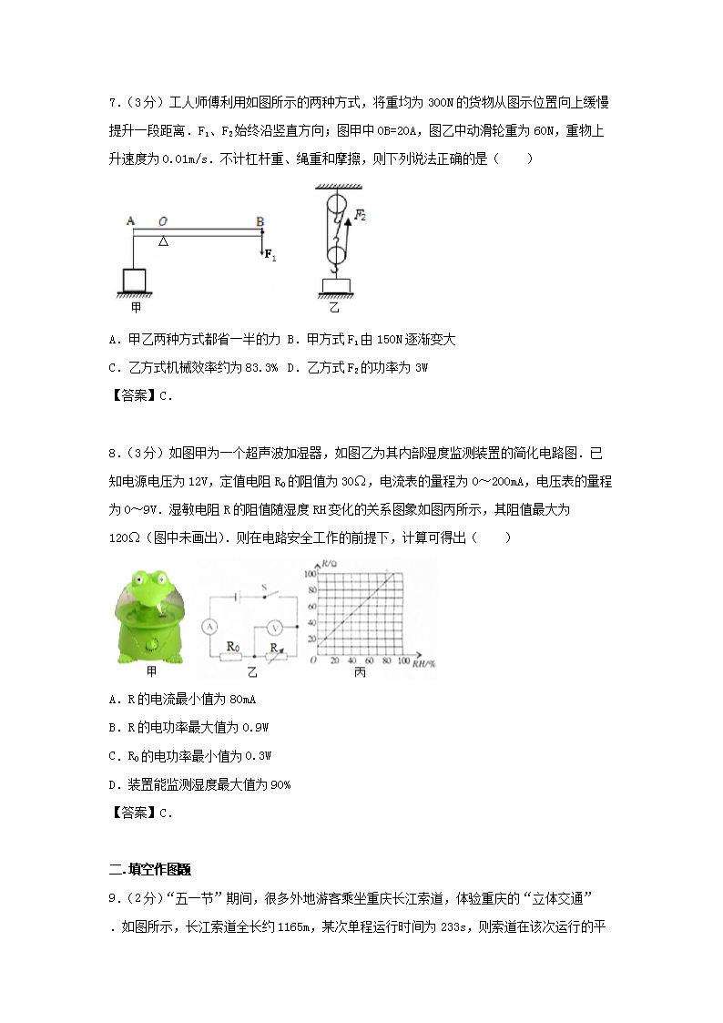 【文档名称】 2017年重庆沙坪坝中考物理试题及答案B卷(Word版).doc
