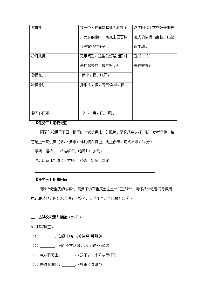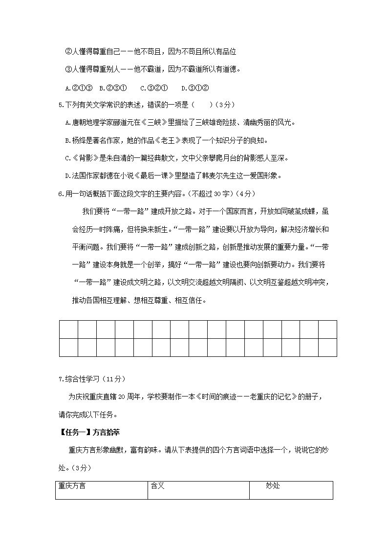 【文档名称】 2017年重庆沙坪坝中考语文真题及答案A卷(Word版).doc