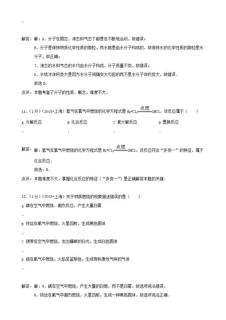 【文档名称】 2015年上海卢湾中考化学真题及答案(Word版).doc