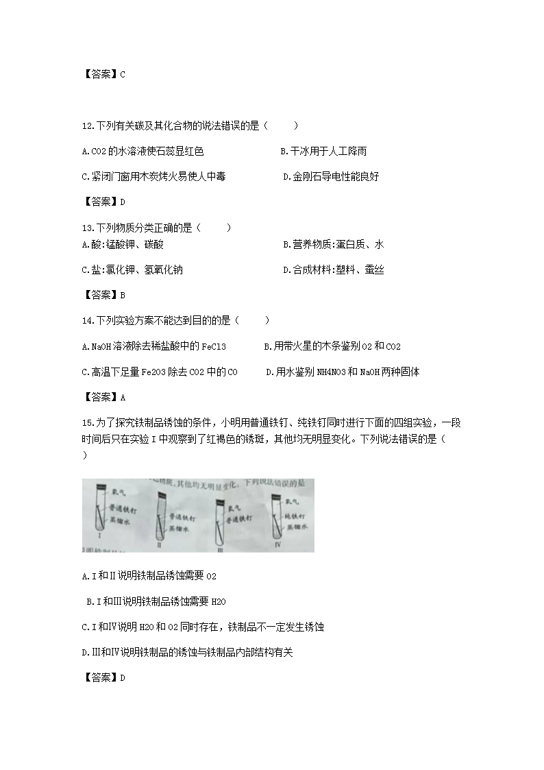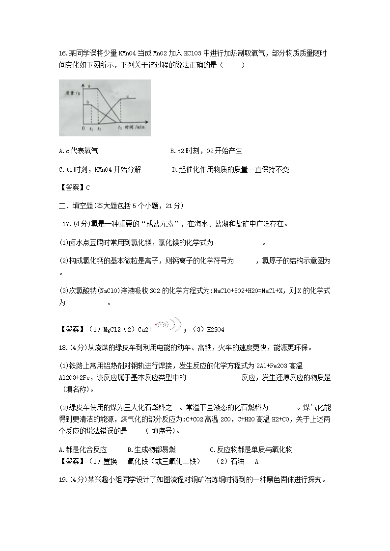 【文档名称】 2019年重庆大渡口中考化学真题及答案B卷(Word版).doc