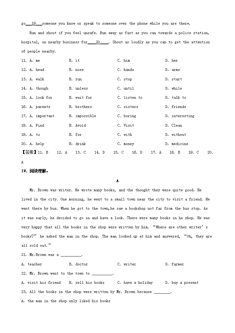 【文档名称】 2019年重庆大渡口中考英语真题及答案B卷(Word版).doc